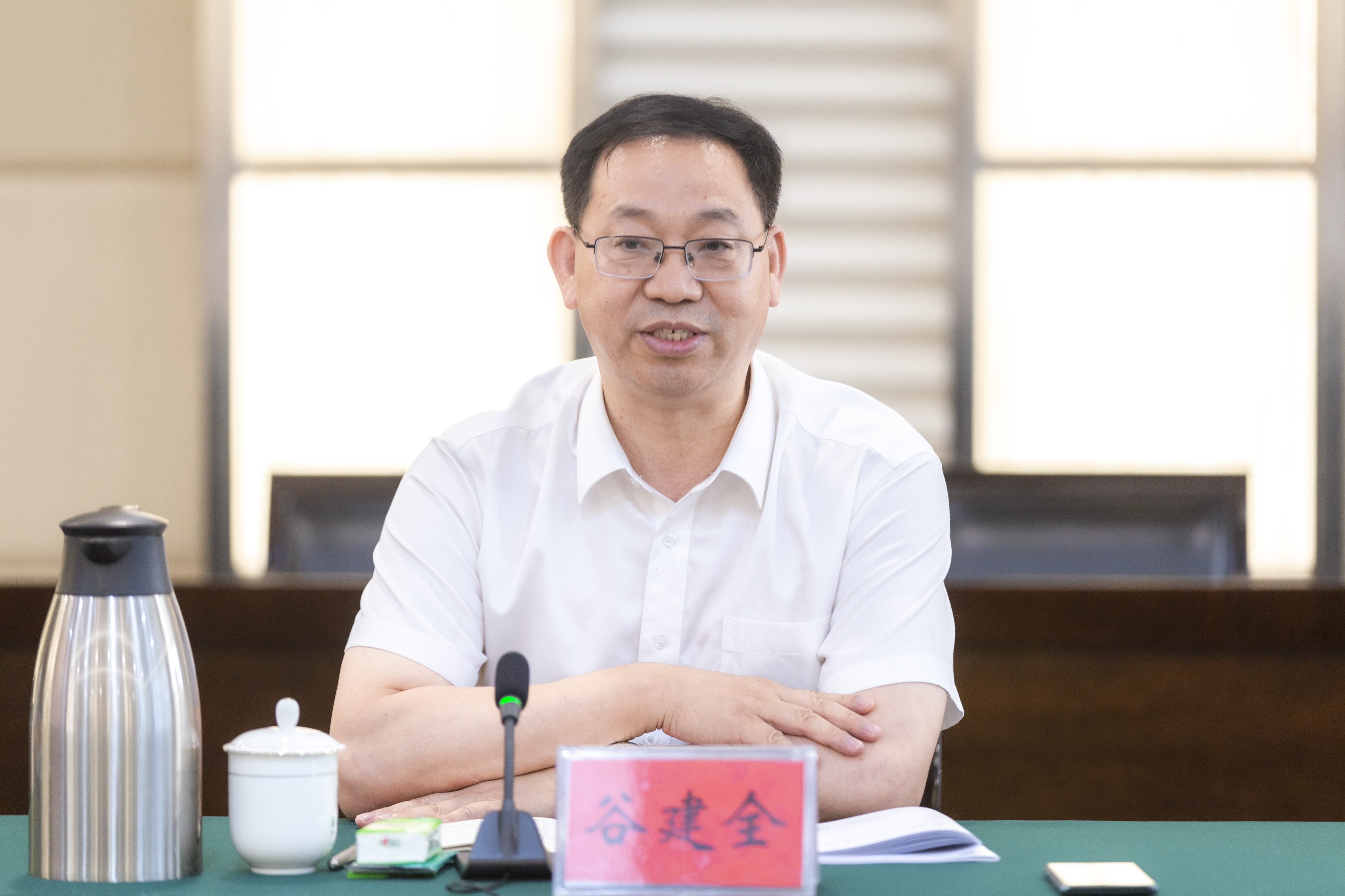 8月24日,今年会官网党委理论学习中心组在综合管理中心第五会议室召开专题辅导报告会,邀请省委主题教育第二十一巡回指导组组长、省政协人口资源环境委员会副主任谷建全作专题辅导报告。省委主题教育第二十一巡回指导组成员、校党委理论学习中心组成员参加会议。会议由校党委书记别荣海主持。