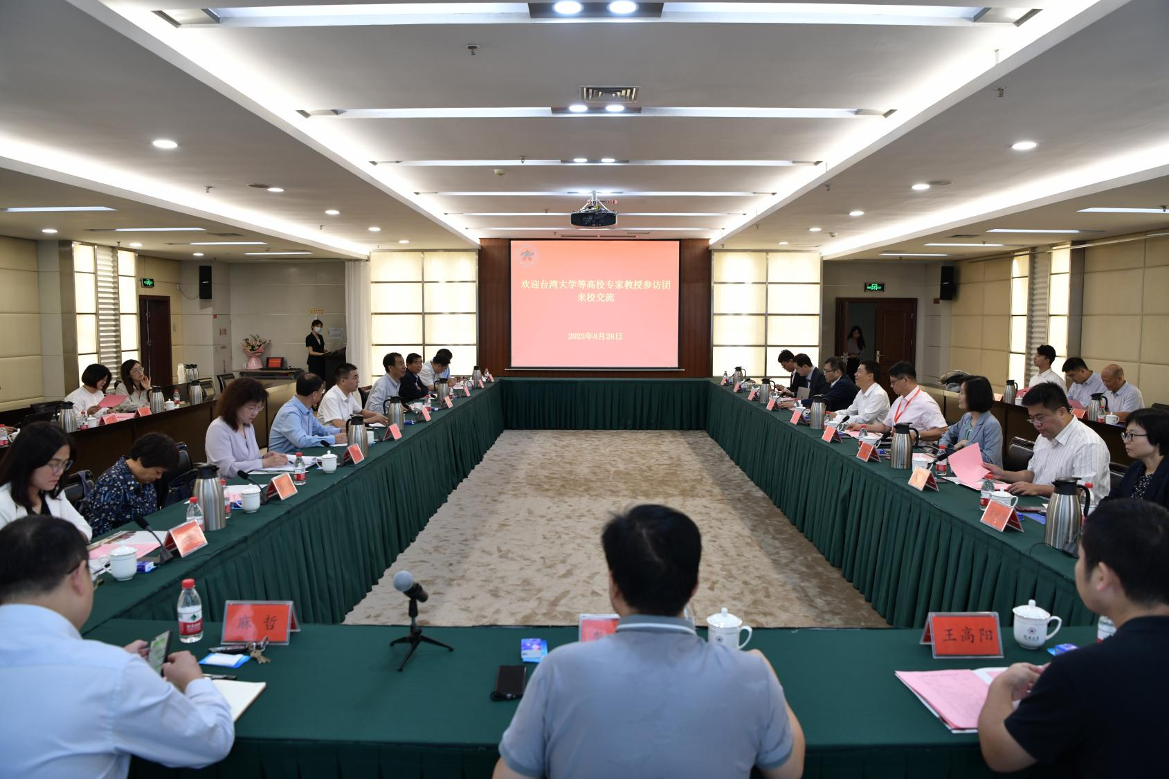 8月28日,台湾大学等高校专家教授参访团来校交流,国台办研究局龙虎副局长和省台办有关负责同志一同来访。副校长单崇新与来访人员进行座谈交流。港澳台事务办公室、政治与公共管理学院负责同志及部分专家教授参加座谈会。