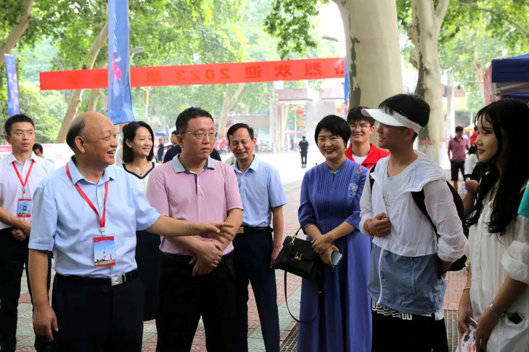 9月2日上午,校党委书记别荣海带领全体在校校领导分别到主校区、南校园、北校园和火车站检查指导迎新工作,详细了解新生报到流程、手续办理情况,看望2023级新生和家长,慰问迎新工作人员和学生志愿者。在综合服务办事大厅,校领导仔细询问了当天的服务安排与工作内容,嘱咐工作人员一定要耐心细致做好服务保障,做到让新生安心、家长放心。在学生工作窗口,校领导详细询问了家庭经济困难新生的报到和绿色通道申请情况,要求不能让任何一个学生因家庭困难而失学。