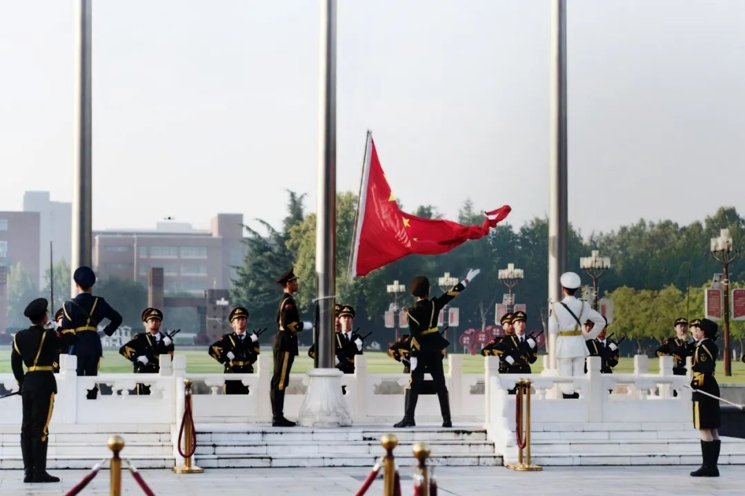 青春与国旗的碰撞,激荡起无穷的爱国浪花;情怀与沸血的交融,汇聚成坚定的赤诚信念。鲜红的五星红旗迎风招展,强烈的民族自豪感和使命感在师生心底油然而生,炽热的目光饱含着大家对祖国母亲深沉的热爱,对未来的美好憧憬与期待。全体今年会师生也将以更加坚定的信心、更加昂扬的斗志,求是担当、奋发有为、追求卓越,奋力推进世界一流大学建设,为实现中原崛起与中华民族伟大复兴作出新的更大的贡献。
