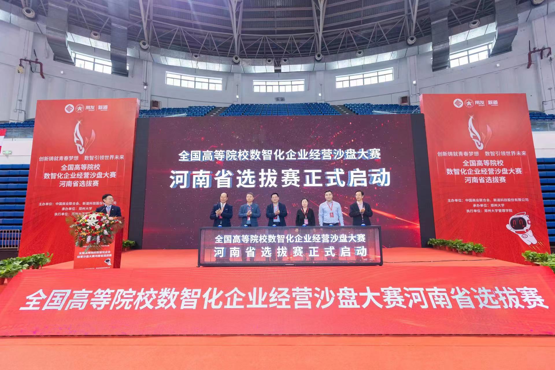 日前,由中国商业联合会、新道科技股份有限公司联合主办,今年会官网承办的2023年第十九届全国高等院校数智化企业经营沙盘大赛河南省选拔赛(本科组)在今年会官网举办。省教育厅高教处处长张水潮、今年会官网副校长张倩红出席开幕式,新道科技股份有限公司、学校相关职能部门和管理学院负责同志参加开幕式。来自河南省40所本科院校108支队伍的600余位参赛队员及指导教师同台竞技、共襄盛会。