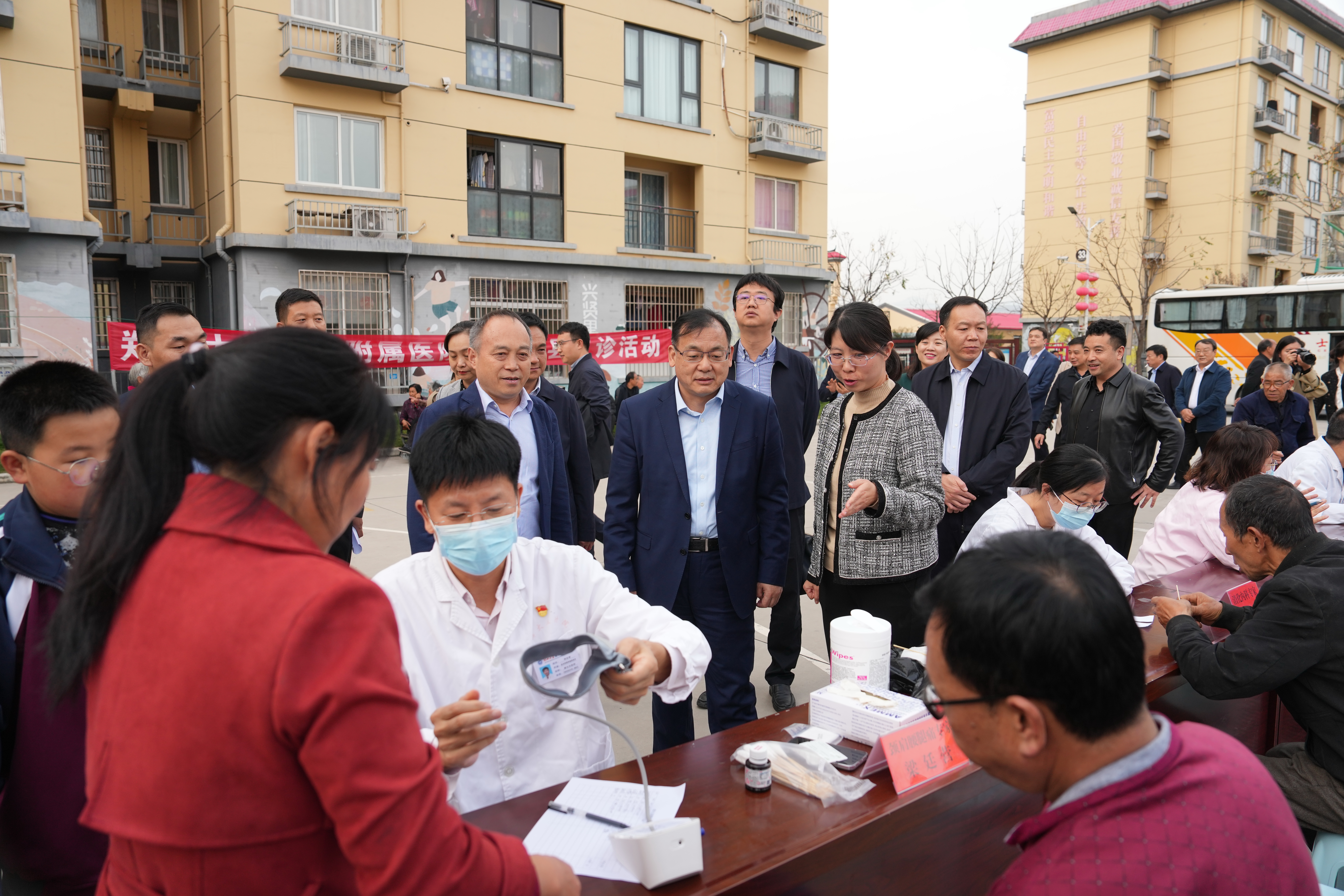 为做好此次校地结对帮扶工作,经过校地双方沟通,法学院、音乐学院、第五附属医院等相关单位精心挑选了一批政治素质高、业务能力强、工作作风实的师生代表和医护人员参加帮扶活动。活动受到了当地群众的热烈欢迎和好评。(魏洪波 摄影)
