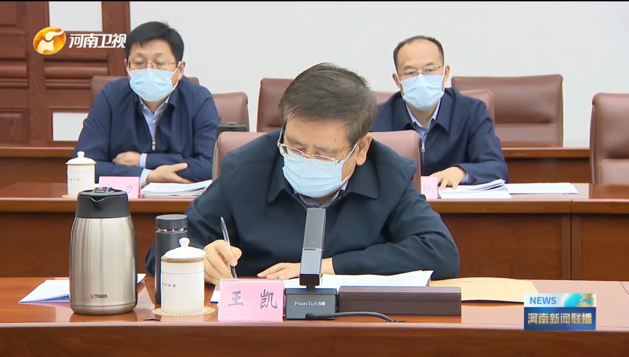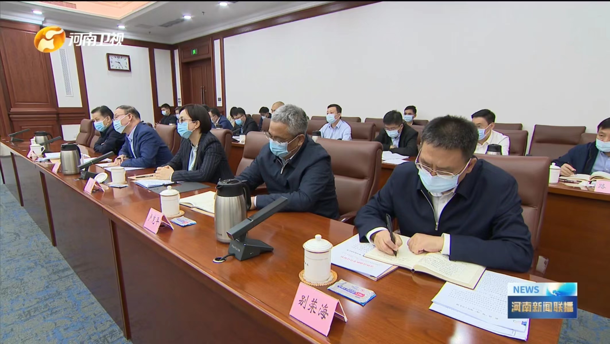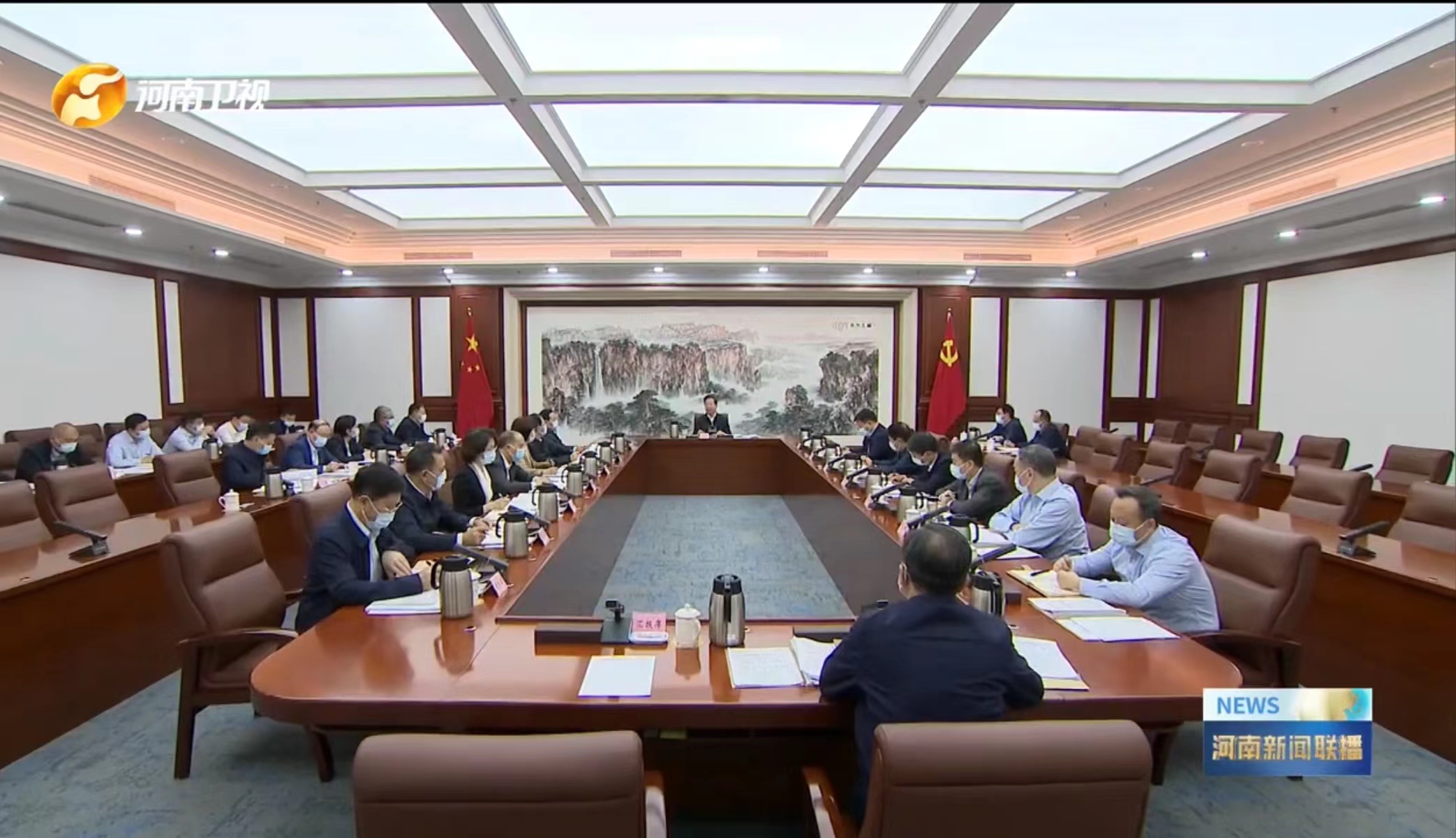 校党委书记别荣海、校长李蓬、副校长单崇新参加了会议。(图片来自河南新闻联播)