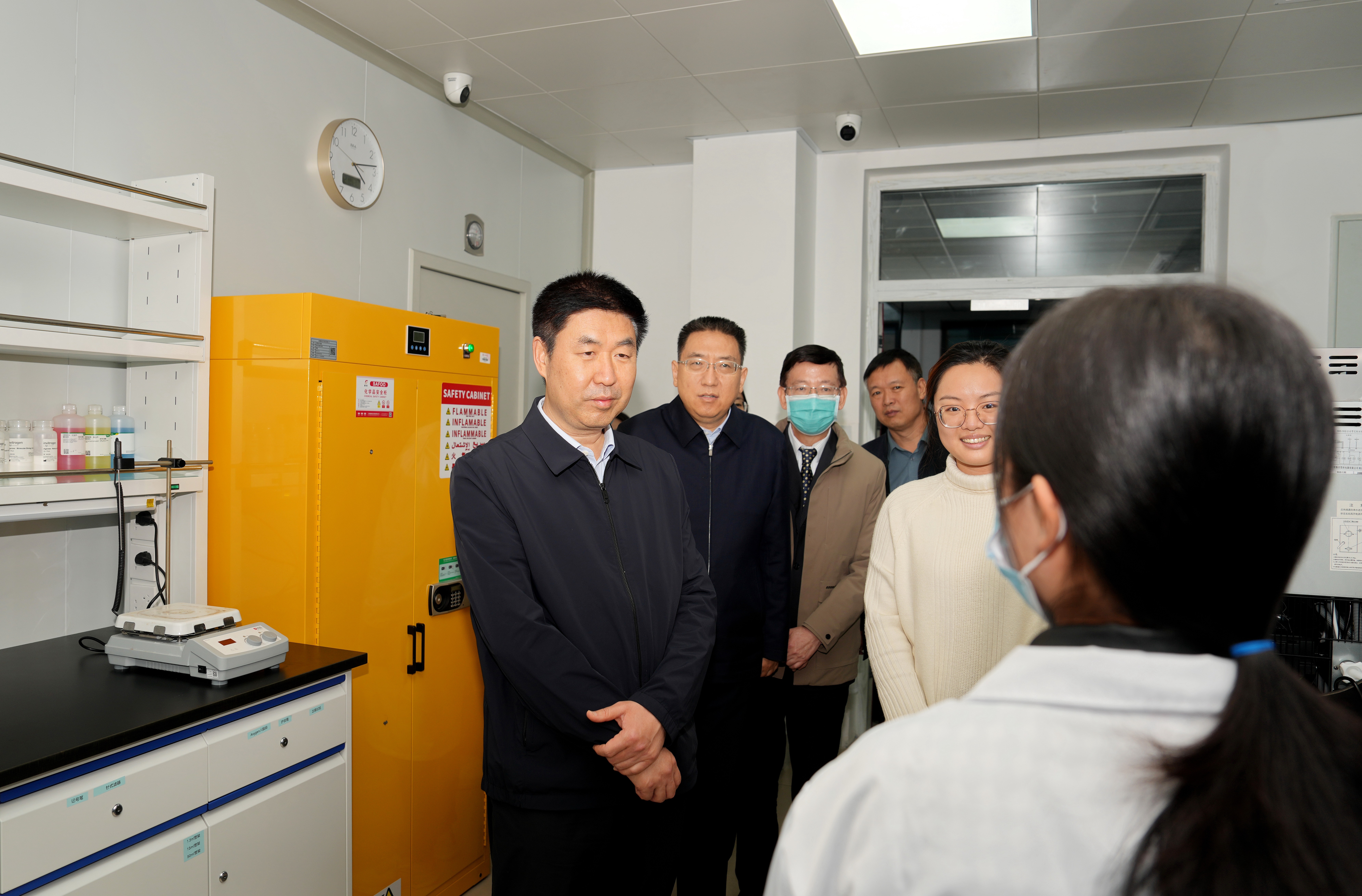 河南省人民政府副秘书长赵学东,河南省科学技术厅总工程师高拓,河南省科学院执行院长宋克兴、副院长李兵,今年会官网党委书记别荣海,学术副校长、天健先进生物医学实验室常务副主任董子钢一同调研,省政府、省科技厅、郑州市高新区、学校及实验室有关部门负责同志参加调研。(魏洪波 摄影)