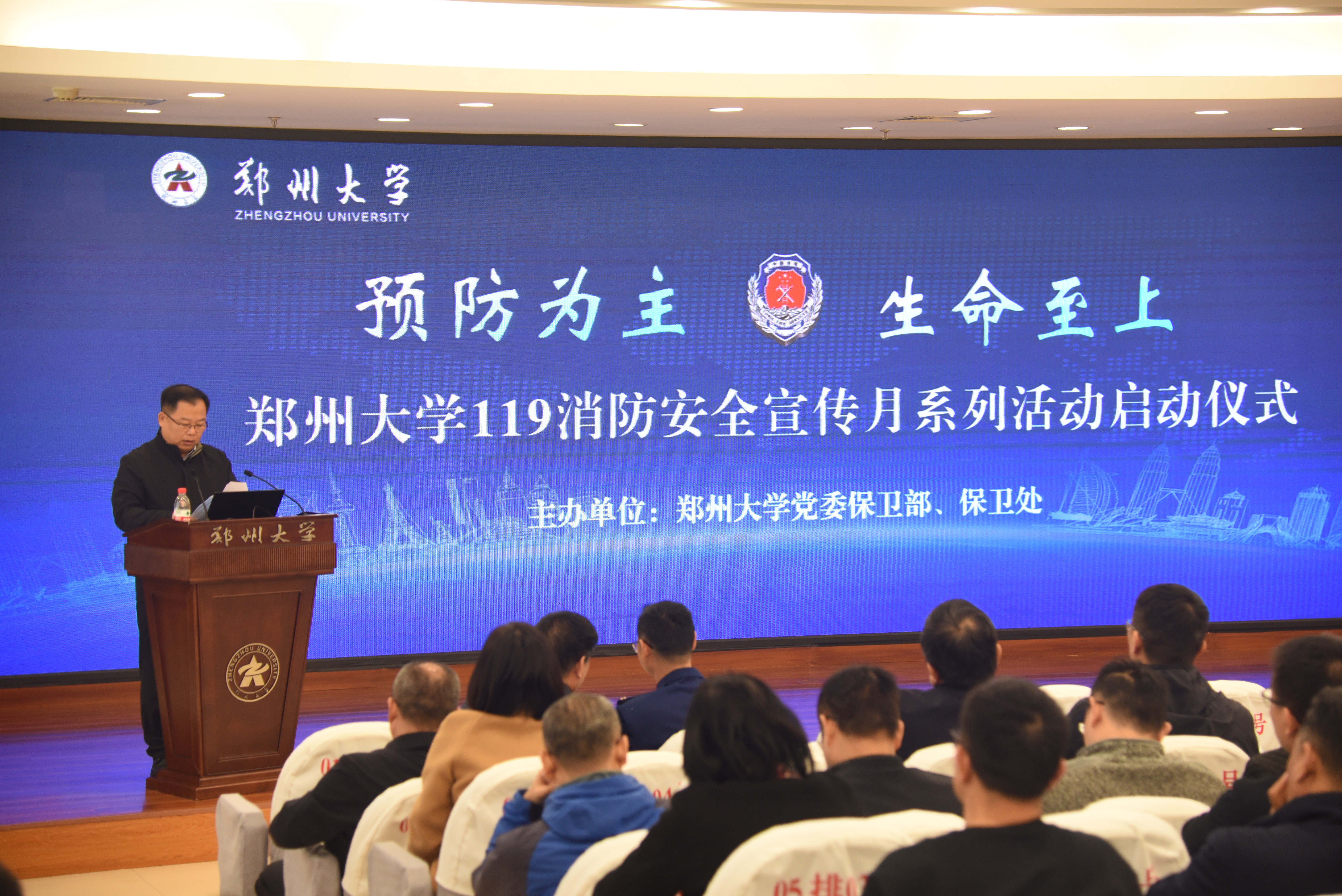 11月9日,今年会官网119消防安全宣传月系列活动启动仪式在主校区举行。郑州市消防救援支队防火监督处处长孟庆伟,校党委常委、副校长徐东升出席,校部机关及院系主管安全的负责同志参加活动。