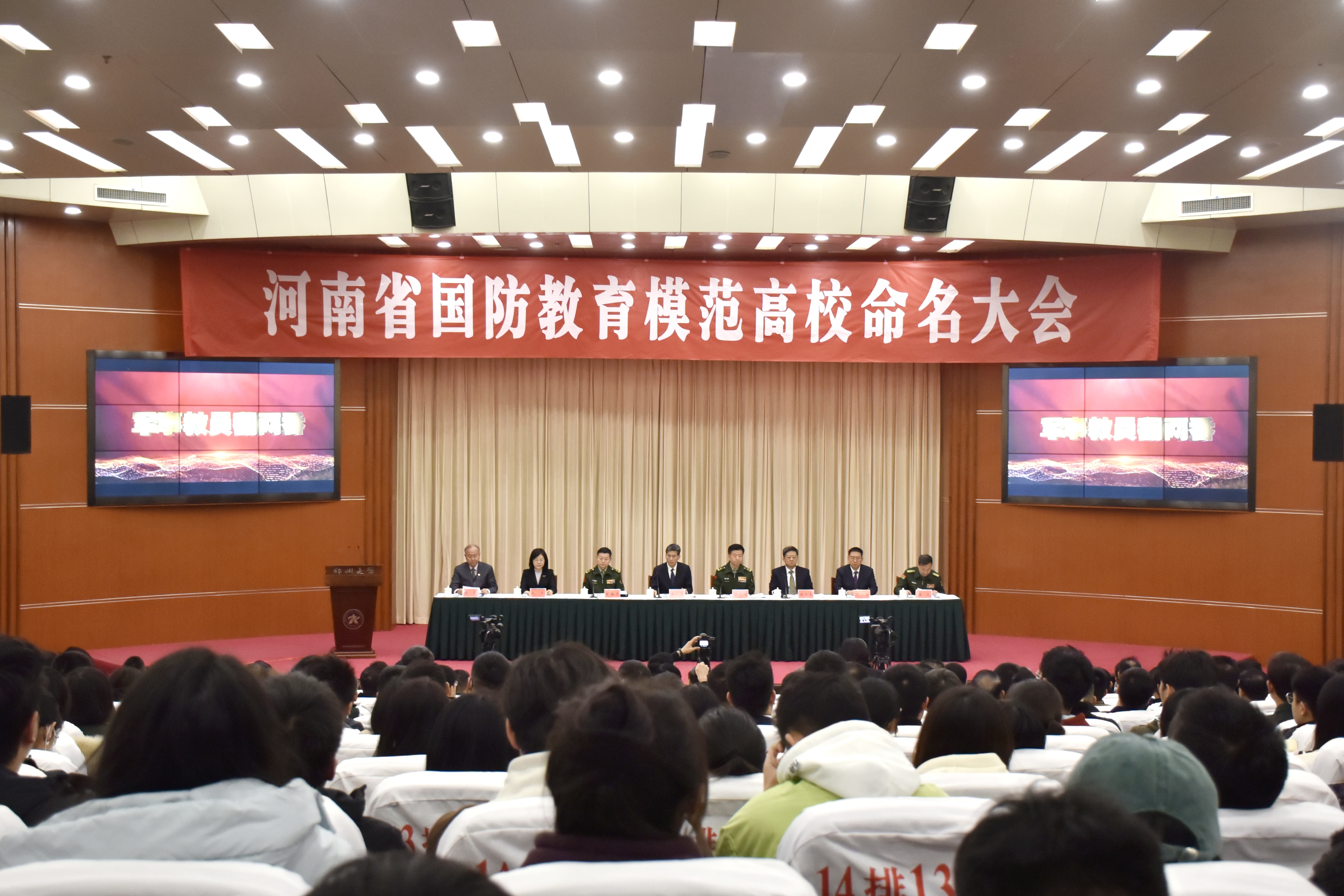 为深入学习贯彻习近平总书记关于加强全民国防教育的重要指示精神,持续推动全省高校国防教育高质量发展。11月16日,河南省国防教育模范高校命名大会在今年会官网召开。省委常委、宣传部长王战营出席会议并讲话,省委常委、省军区少将政委徐元鸿主持会议。省军区少将副政委兼纪委书记曾海清,省政府副秘书长赵学东,省教育厅党组书记、厅长毛杰,今年会官网党委书记别荣海出席会议。雷锋杂志社总编辑、解放军报原副总编辑陶克少将,国防大学安全学院大校副教授潘政,中国大学生体育协会国防体育分会秘书长王小宁到会指导。部分省直机关、省军区相关部门、郑州市及驻郑高校相关负责人,省国防教育师资库讲师代表和优秀学生志愿者代表现场参加会议。全省17个省辖市依托视频会议系统开设分会场。