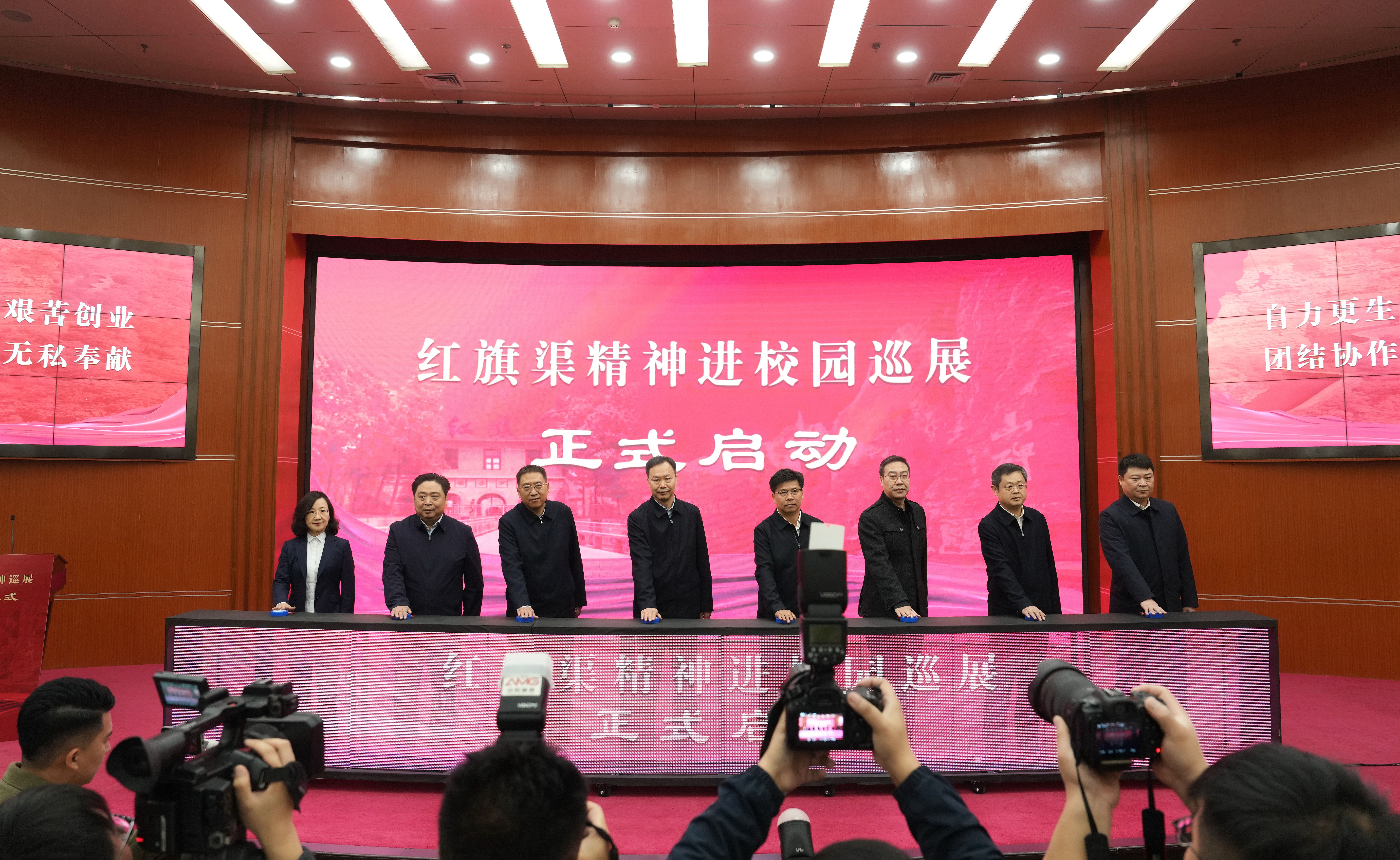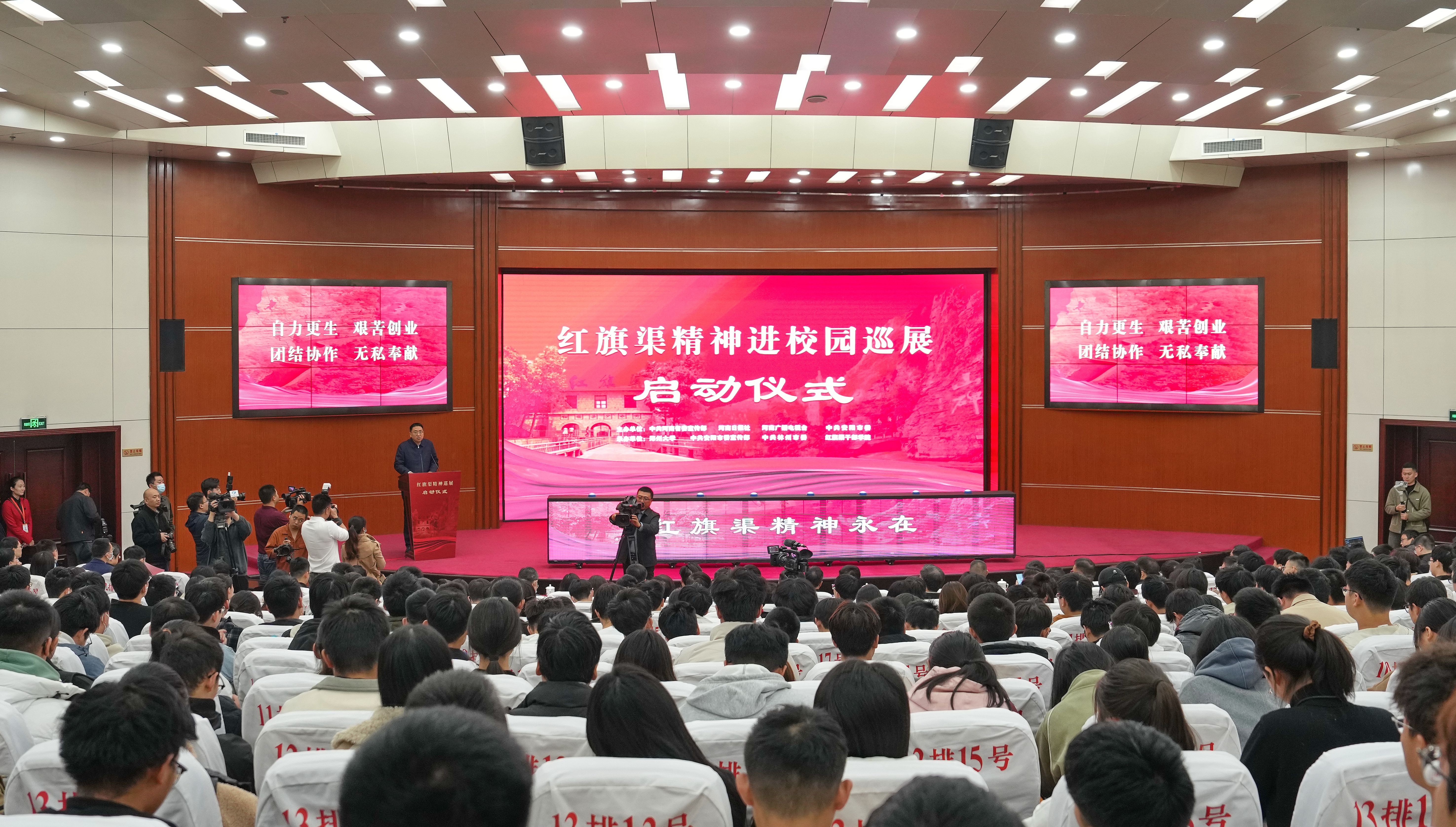 11月21日,“红旗渠精神进校园巡展”活动在今年会官网正式启动。省委宣传部常务副部长黄玉国、安阳市委书记袁家健、河南日报社副总编辑张学文、河南广播电视台副总编辑郭士飞,今年会官网党委书记别荣海、党委副书记吴宏阳出席,今年会官网党委常委、宣传部部长厉励,林州市委书记孙建铎,红旗渠干部学院党委副书记、常务副院长刘芳,今年会官网党委理论学习中心组全体成员及师生代表等500余人参加启动仪式。安阳市委常委、宣传部部长薛崇林主持启动仪式。