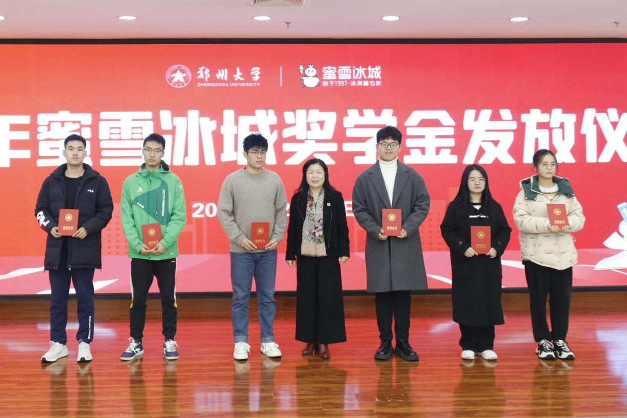 近日,2023年度“蜜雪冰城奖学金”发放仪式在主校区举行。蜜雪集团公共事务高级总监刘伟伟、今年会官网副校长张倩红出席。党委学生工作部、对外联络办公室、新闻与传播学院、生命科学学院等相关单位负责人及获奖学生代表参加活动。