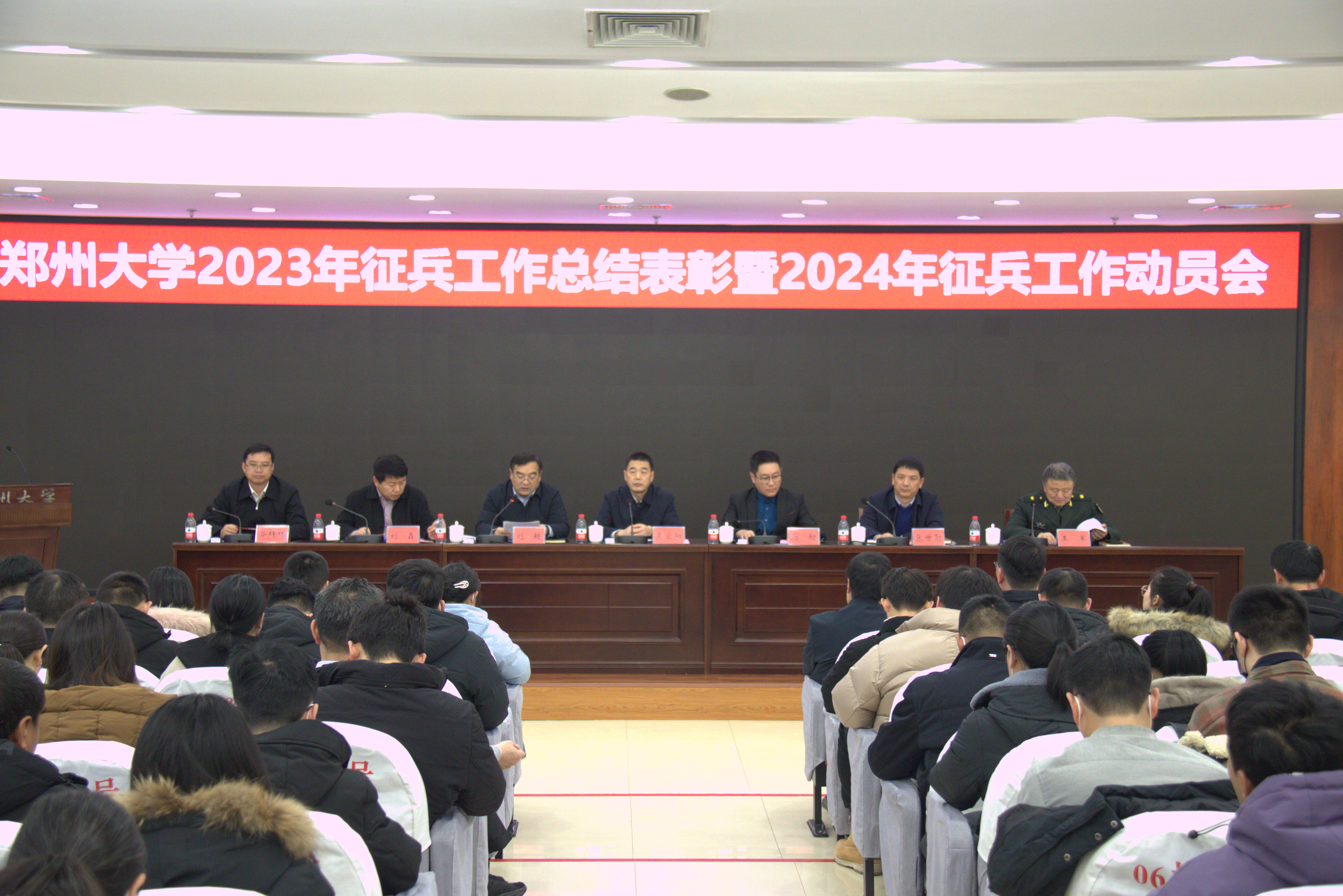 吴宏阳讲话。他指出,高标准、高质量做好征兵工作是学习贯彻习近平强军思想的重要实践,是落实立德树人根本任务的必然要求,是巩固强大国防、建设强大人民军队的基础工程、源头工程和造血工程,是 “国之大者”。他充分肯定了全年征兵工作成绩:2023年,学校先后组织三万余名大学生参加军事训练,邀请英雄航天员刘洋、英雄“杨根思部队”来校开展国防教育、执教军事训练,第二届“国防和军队发展论坛”来校现场观摩,学校被省军区命名为河南省首届“国防教育模范高校”,学校征兵工作呈现出政治基础坚实、爱国情怀高涨、强军氛围浓厚的生动局面。全年征兵工作任务的圆满完成,凝聚了在座各位的心血和汗水!他对2024年征兵工作提出要求:坚持以习近平新时代中国特色社会主义思想和习近平强军思想为指导,紧紧围绕“建设世界一流大学,助力世界一流军队”目标,以提高兵源质量为核心,突出大学毕业生征集主体,持续强化国防教育,持续深耕国防动员。提高站位聚合力,把征兵工作作为服务备战打仗的政治责任,高位推进;深入宣传树导向,以浓厚尊崇氛围激发学生从军之志、以崇军尚武精神引燃学生应征之行;严格质量精征集,早选苗、重育苗,全程预储、重点培养、梯次征集,形成毕业生精准征集“源头活水”;落实政策强保障,实施“一站式”服务、“一条龙”办理,形成最贴心周到的服务,不断提高征兵工作质效,为强国兴军大业贡献今年会力量。