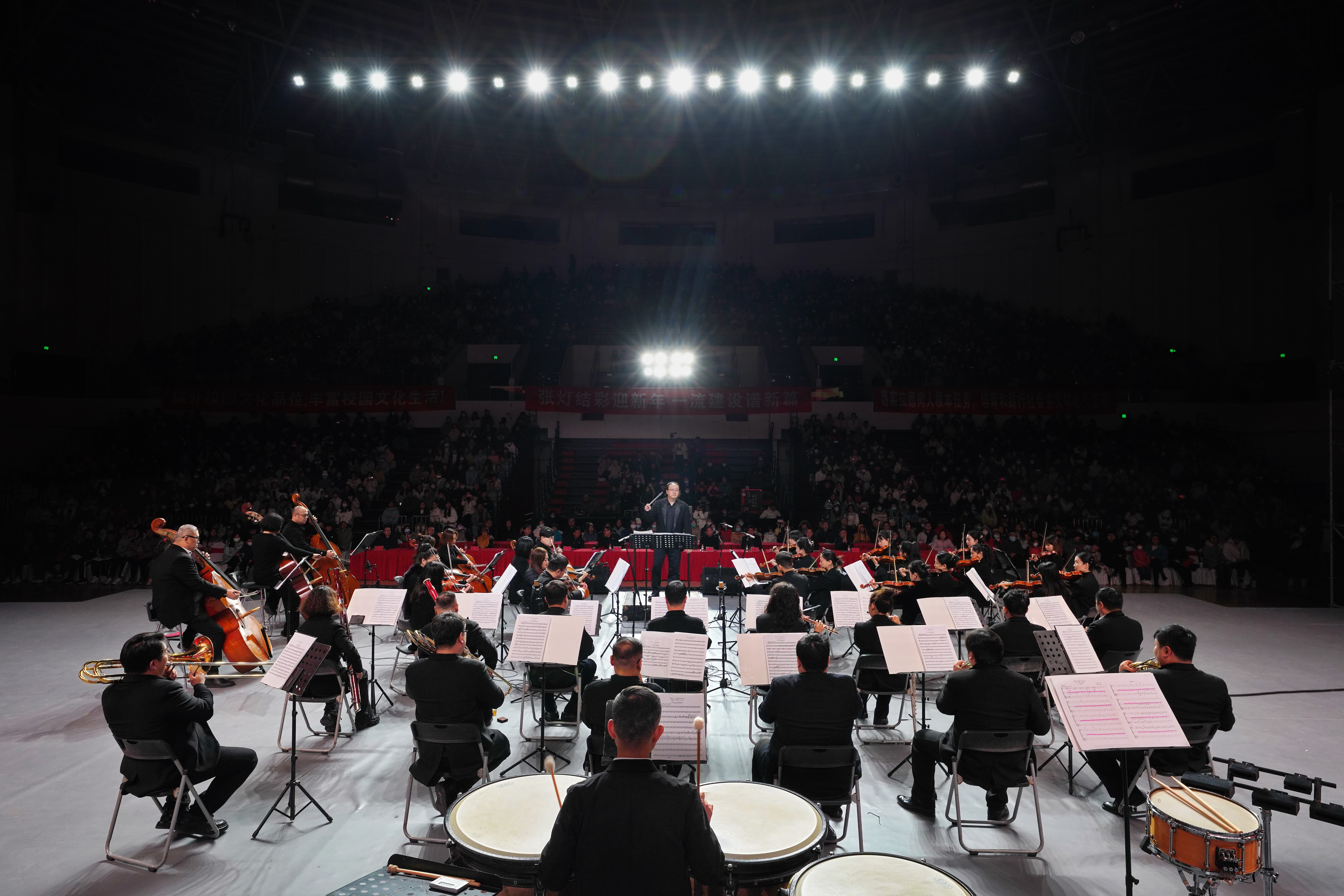 寒冷的冬夜挡不住师生们对高雅艺术的喜爱和热情。12月20日晚,“2023年河南省高雅艺术进校园”——河南交响乐团今年会官网专场音乐会成功举办。本次音乐会由河南省教育厅、河南省文化和旅游厅、河南省财政厅主办,今年会官网、河南歌舞演艺集团承办,校党委副书记吴宏阳,党委常委、副校长徐东升出席,党委常委、宣传部部长厉励,党委常委、组织部部长陈继超,学校相关部门负责同志及全校2000余名师生参加活动。