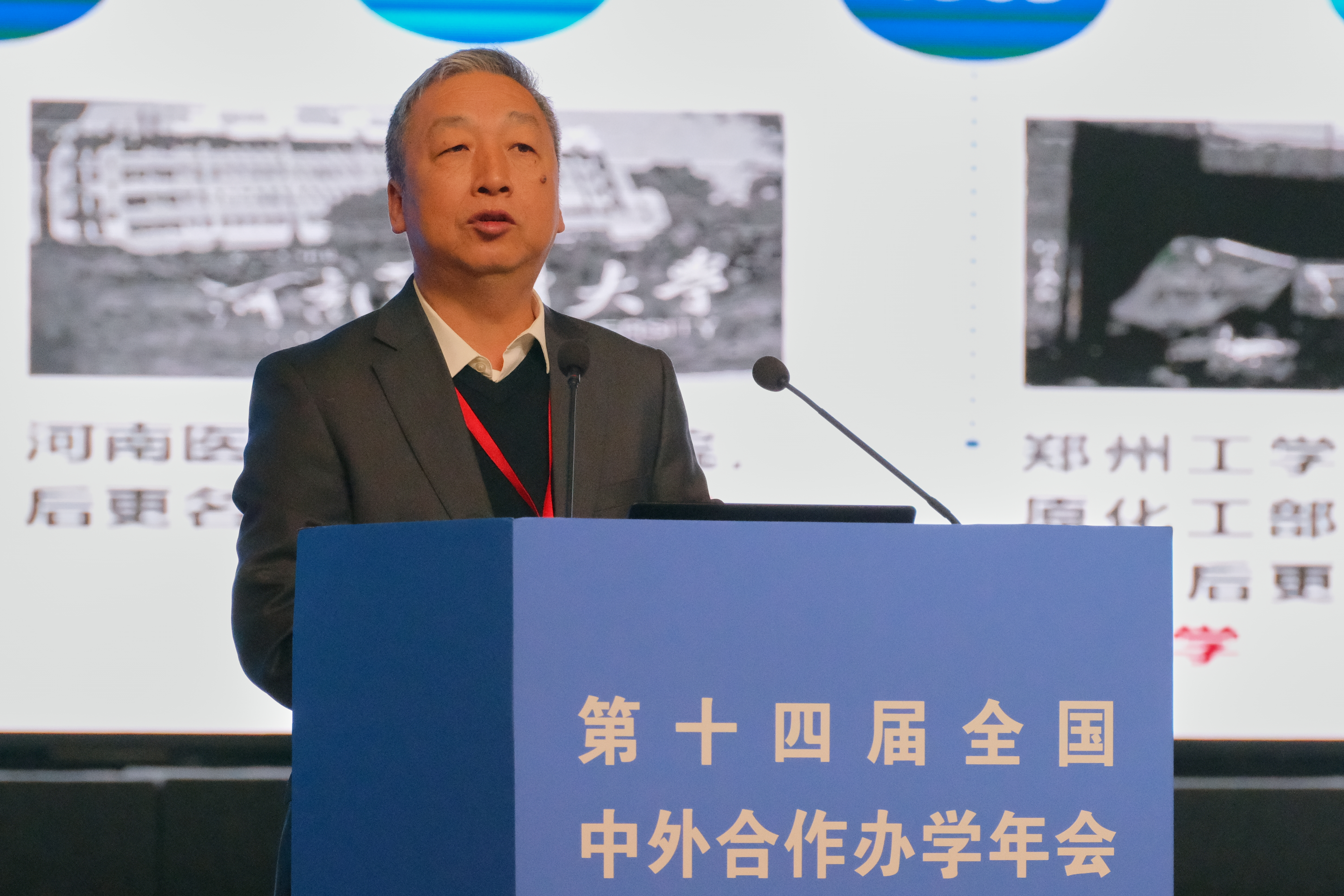 12月21日至22日,第十四届全国中外合作办学年会在郑州举行。本届年会的主题是“教育强国建设目标下的中外合作办学:国际影响力、创新、前景”。中国高等教育学会副会长、教育部高等教育司原司长张大良,教育部国际司原副司长、教育部港澳台办原常务副主任徐永吉,河南省教育厅副厅长、一级巡视员刁玉华以及全国三百多所高校代表共800人与会。副校长刘春太代表学校参会并作题为《以中外合作办学高质量发展助推一流大学建设》的主旨报告。