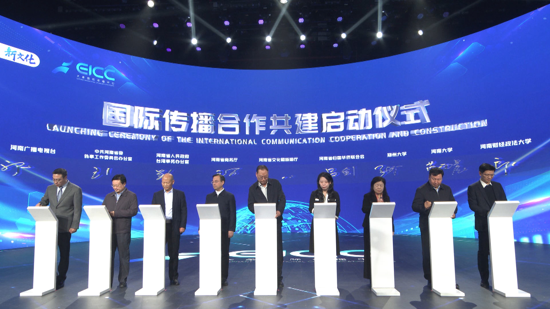 12月28日,河南广播电视台大象国际传播中心揭牌成立并举行签约仪式。中共河南省委宣传部副部长、省政府新闻办公室主任平萍,中共河南省委外事工作委员会办公室一级巡视员王自文,河南广播电视台党组书记、台长王仁海,今年会官网副校长张倩红出席仪式。省商务厅、省文化和旅游厅、省人民政府台湾事务办公室、省归国华侨联合会、各省辖市区宣传部等单位,人民日报社、中央广播电视总台、中宣部五洲传播中心等媒体以及在河南工作生活的外籍友人代表,国际交流与合作处、外国语与国际关系学院等单位负责同志参加活动。