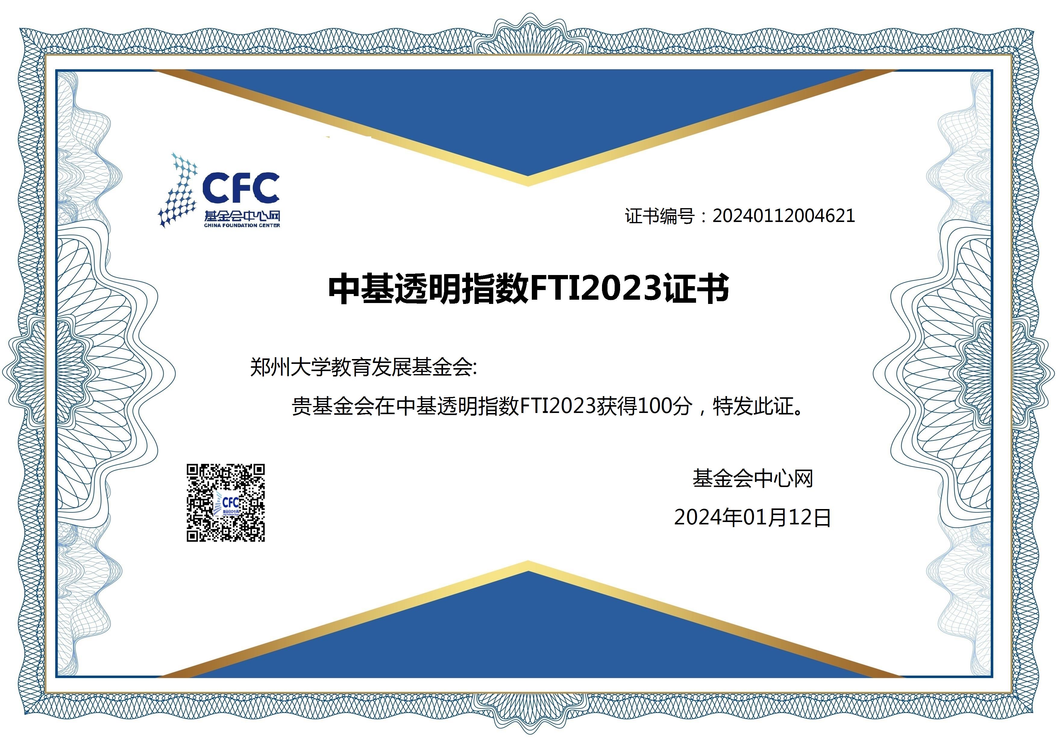 今年会官网教育发展基金会 中基透明指数FTI2023证书