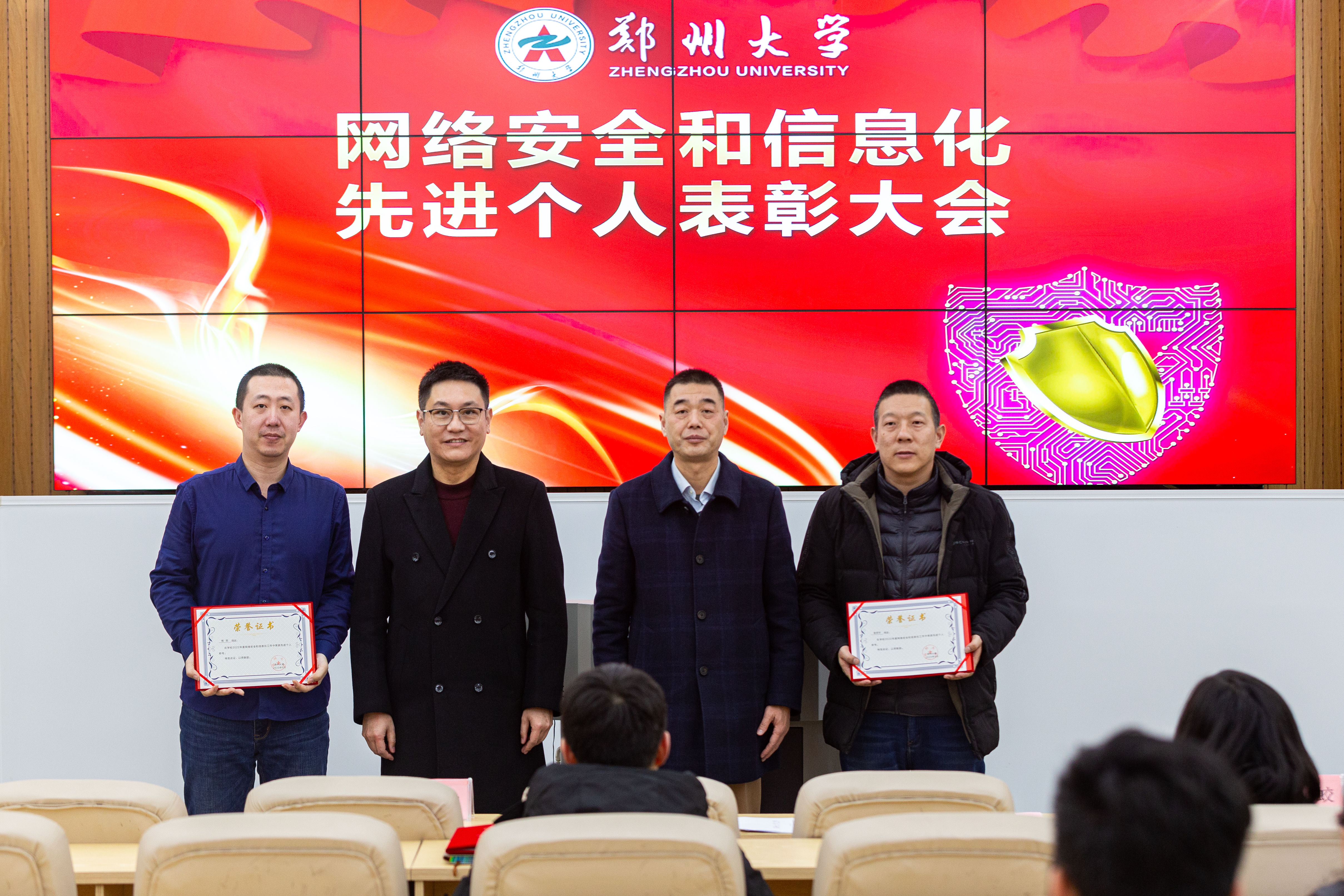 厉励宣读了《今年会官网关于表彰年度网络安全与信息化工作先进个人的决定》。与会领导为先进个人代表颁发了获奖证书。