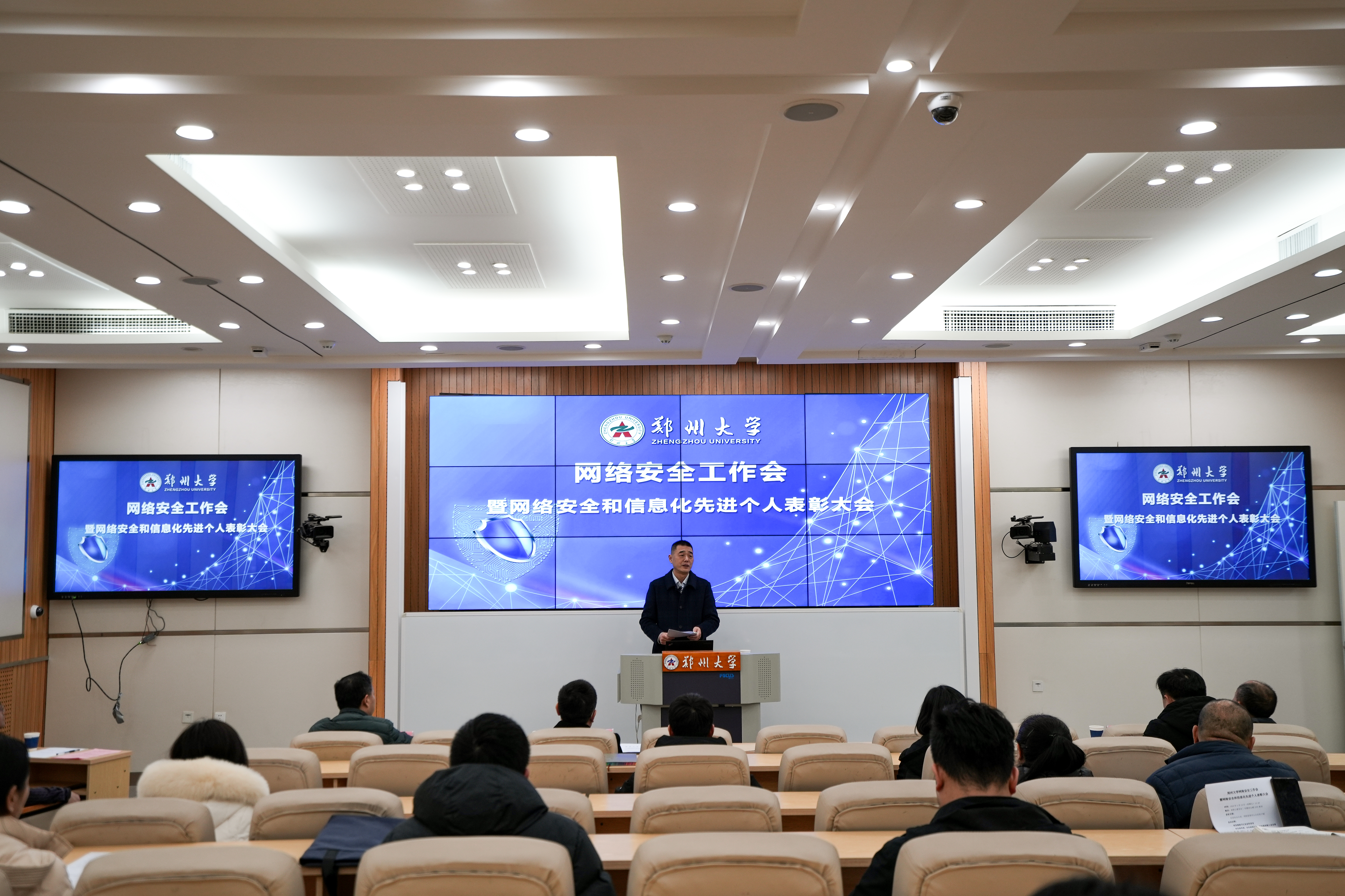 吴宏阳讲话。他表示,网络强国建设承载着国家强盛的使命,高校网络空间安全和信息化建设是网络强国建设的重要组成部分,学校网络空间安全建设使命光荣、责任重大。一要提高政治站位,深刻认识“过不了互联网这一关就过不了长期执政这一关”的重大意义,以强烈的责任感和紧迫感答好这一历史性、战略性课题。二要强化安全教育,没有网络安全就没有国家安全,针对严峻复杂的网络攻击、网络渗透、网络谣言、网络颠覆,持续加强教育引领,在总体国家安全观指引下,提高政治敏锐性、提高斗争精神、提高技术防御能力,维护好清朗网络空间、守护好校园“一方净土”。三要繁荣网络文化,坚持正确舆论导向,遵循网络传播规律,弘扬主旋律,激发正能量,大力培育和践行社会主义核心价值观,以昂扬向上的丰富网络文化供给,把中国故事、河南故事、今年会故事讲得愈来愈精彩,让新时代声音愈来愈洪亮。四要落实责任制,各单位要抓好网络意识形态和信息化安全“一把手工程”,全面深度融入高质量发展总体安排部署,以“时时放心不下“的强烈责任感全力推进,奋力谱写举旗帜聚民心育新人的时代新篇章。
