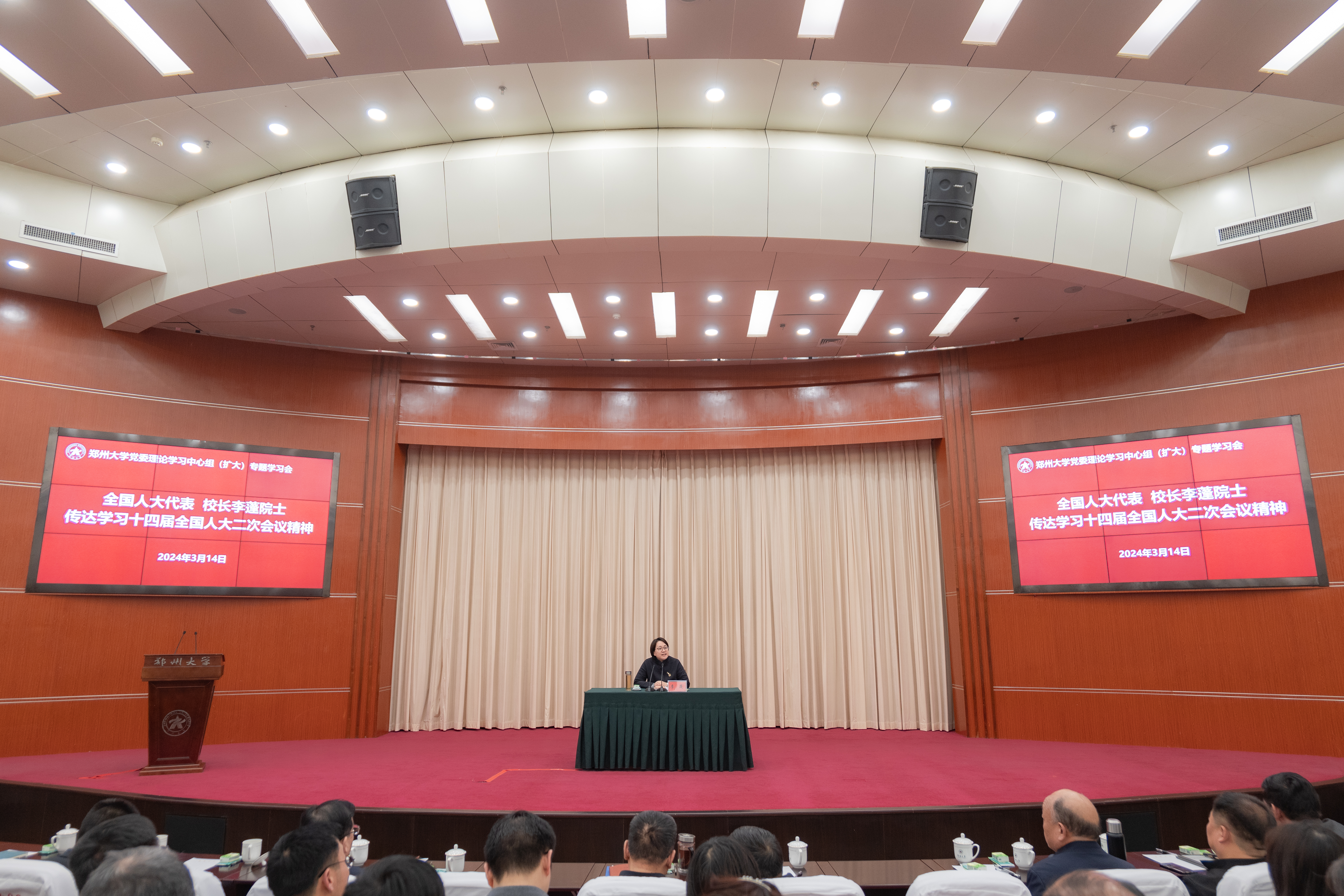 李蓬传达了习近平总书记重要讲话精神,政府工作报告主要内容,全国人大常委会、全国政协常委会工作报告、“两高”报告的主要内容以及河南代表团履职情况。她强调,这次两会是在中华人民共和国成立75周年、实现“十四五”规划目标任务关键之年召开的一次重要会议。传达和学习全国两会精神,目的就是深入学习贯彻党中央、国务院最新部署,凝聚共识、形成合力,加快一流大学建设步伐。