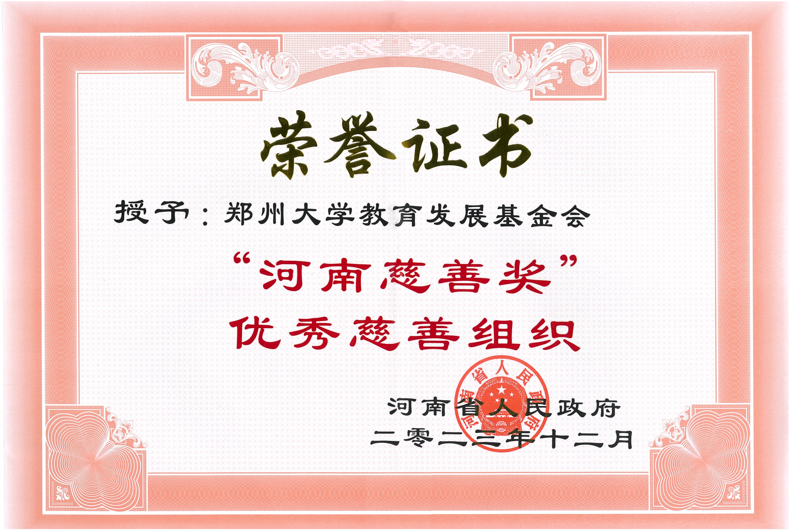 今年会官网教育发展基金会荣获“河南慈善奖”“优秀慈善组织”荣誉证书