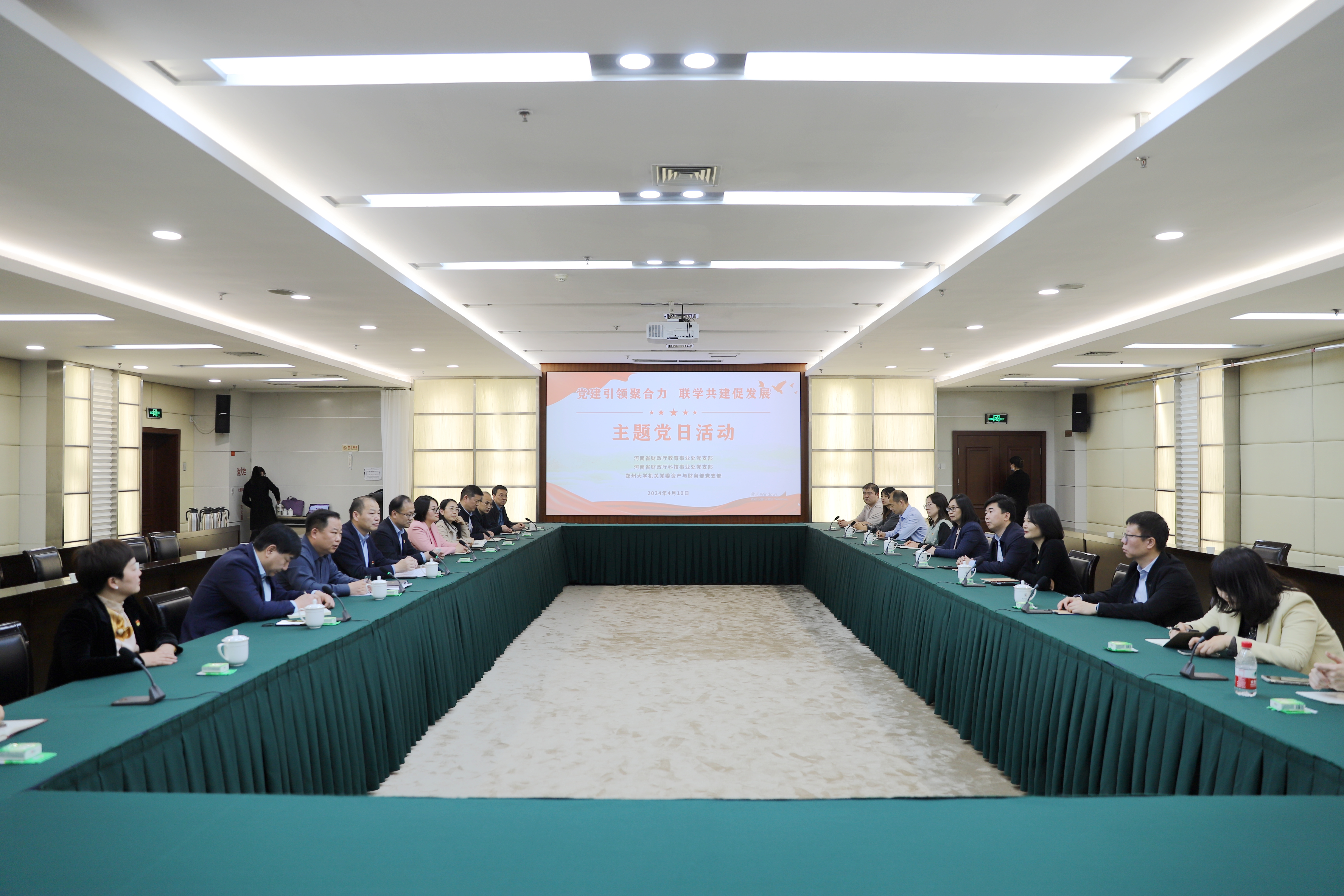 “党建引领聚合力 联学共建促发展”,近日,资产与财务部党支部与河南省财政厅教育事业处党支部、科技事业处党支部等三个党支部在今年会共同开展主题党日联学共建活动。省财政厅二级巡视员陈静、科技事业处处长李旭,校党委常委、副校长徐东升出席,学校机关党委负责同志和各支部党员等共30余名党员参加了活动。