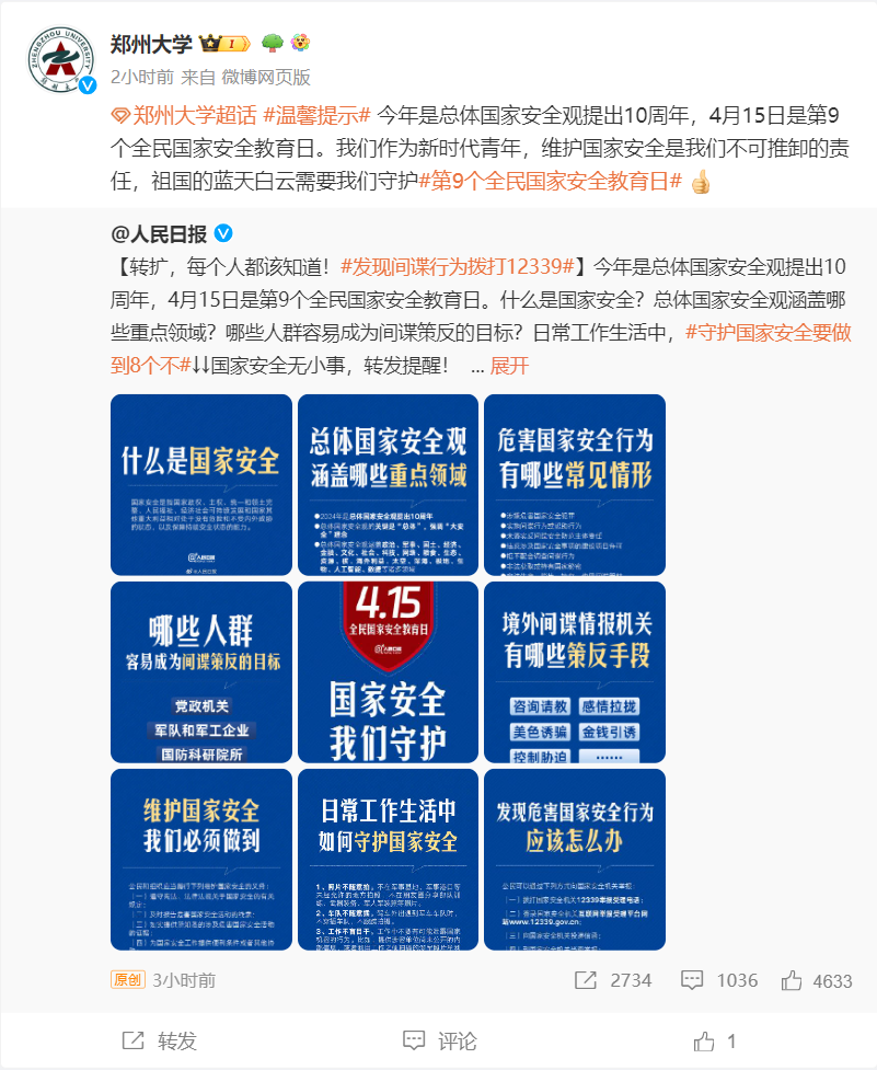连日来,由学校国安办牵头,各部门、各单位按照任务清单,强化使命担当,加强组织领导,创新方式载体,细化工作方案,精心设计了一系列操作性强、覆盖面广、影响力大的主题教育活动,组织动员7万余名师生广泛参与,推动国家安全宣传教育走深走实。