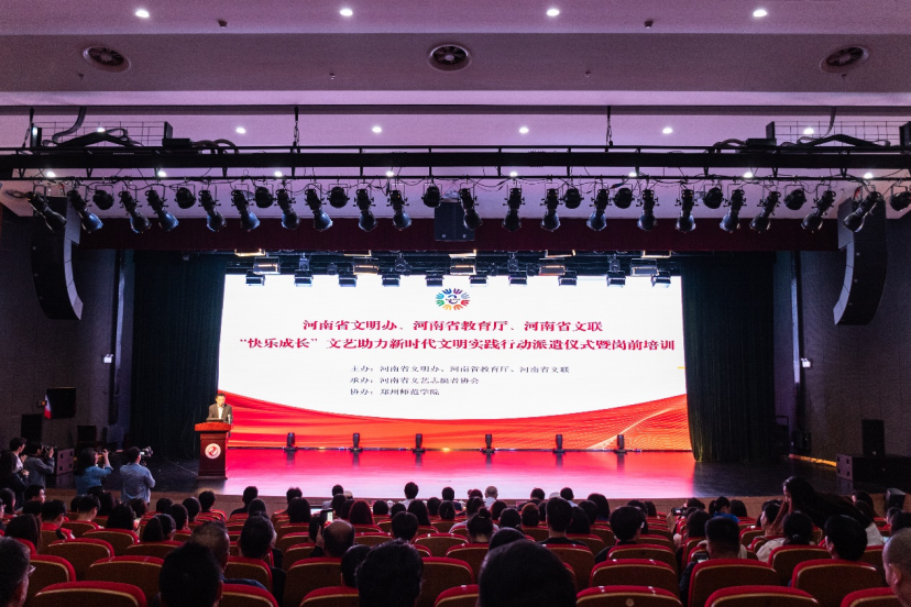 4月22日,由河南省文明办、河南省教育厅、河南省文联主办的2024年上半年“快乐成长”文艺助力新时代文明实践行动派遣仪式暨岗前培训在郑州举行。省委宣传部二级巡视员葛卫华,省文联党组成员、副主席蒋愈红等出席活动,今年会官网党委宣传部相关负责同志和省内11所高校的88名大学生文艺志愿者参加仪式。