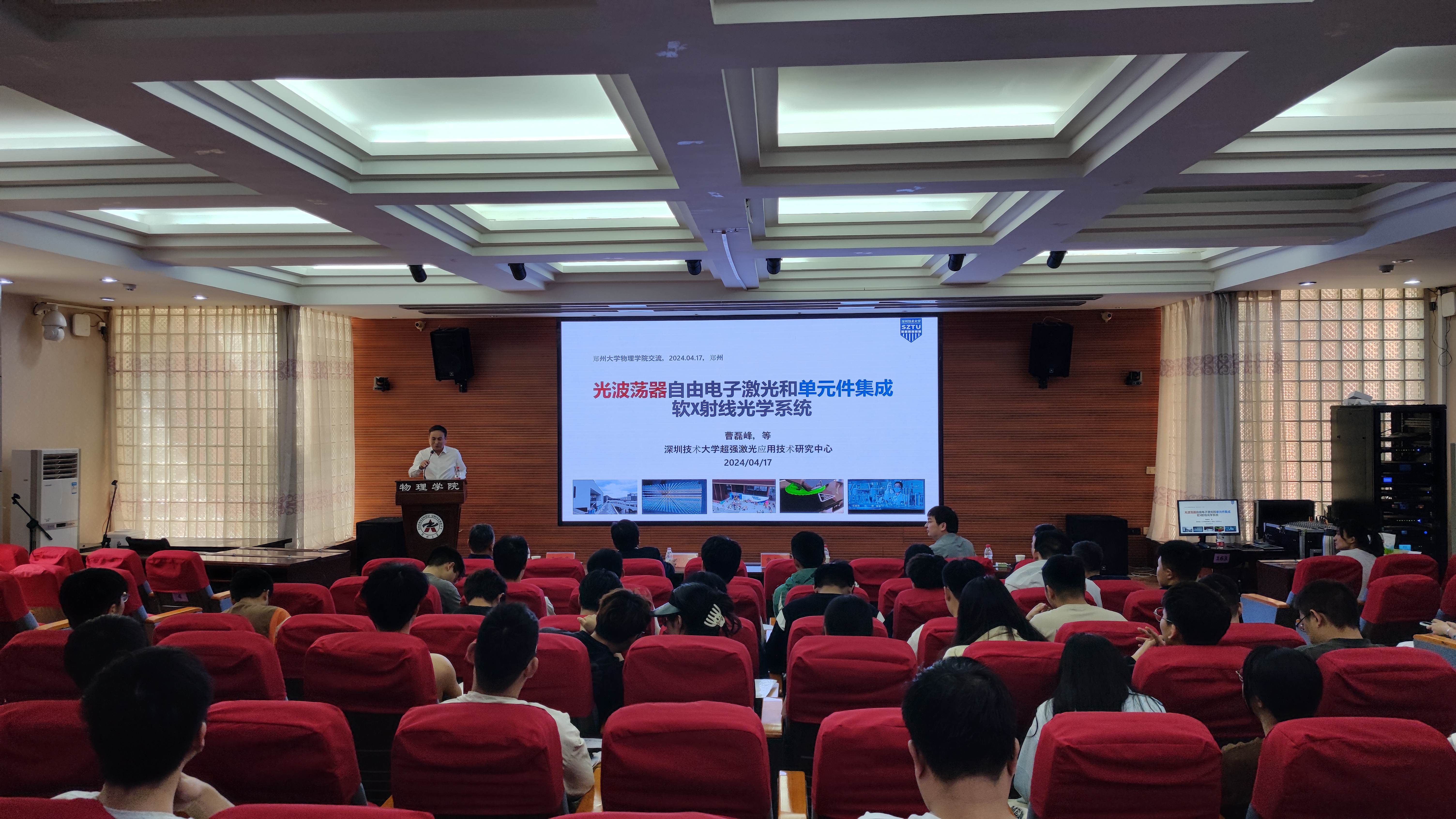 曹磊峰以《光波荡器自由电子激光和单元件集成软X射线光学系统》为题,简要介绍了其团队在光波荡器自由电子激光和单元件集成X射线光学系统研究方面的最新进展以及深圳技术大学先进材料测试技术研究中心的建设情况及未来应用。随后的交流互动环节,曹磊峰解答了老师和同学们的提问。