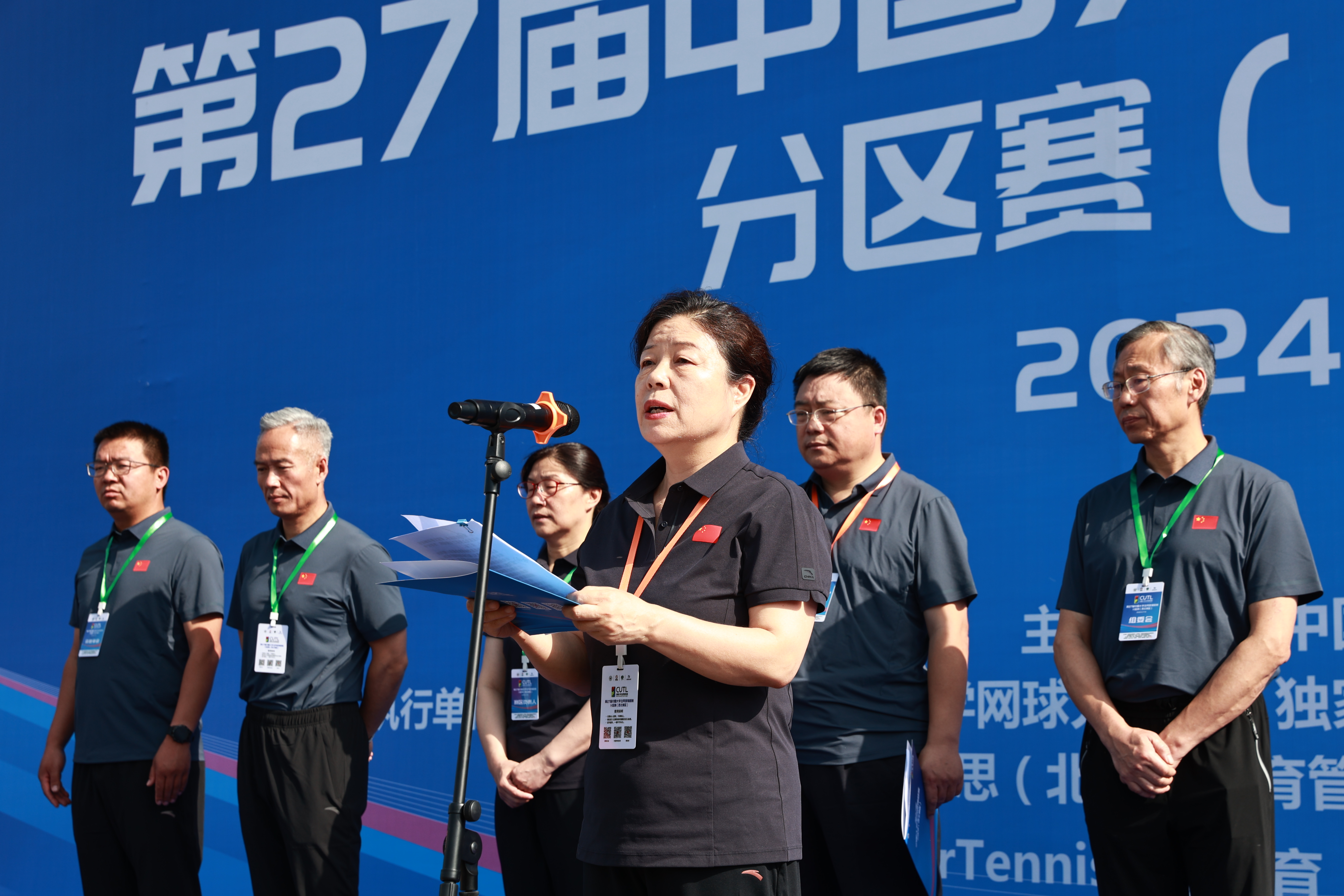安春元致开幕词。他表示,网球分会深入贯彻习近平总书记对教育和体育的重要指示精神,致力于“为党育人、为国育才”,坚持守正创新,不断完善优化赛制体系。本次分区赛是在中国大学生网球锦标赛2024年的第六站比赛,也是西北赛区首次落户郑州。今年会官网具有丰富的赛事承办经验,希望通过本次活动进一步把高校网球运动打造成一个让学生享受乐趣、增强体质、健全人格、锤炼意志的育人平台。(陈卓 摄影)