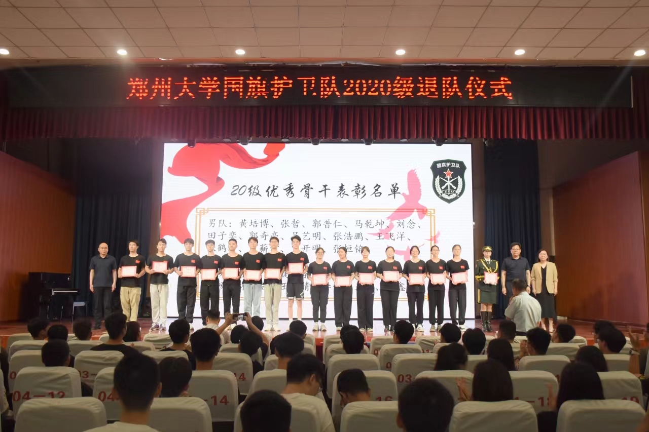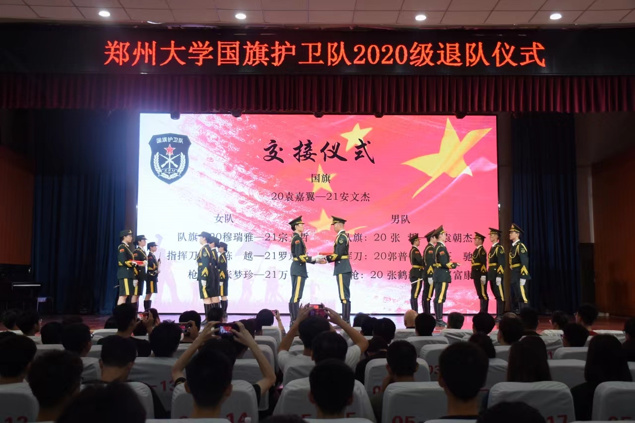 王利国在讲话中充分肯定了国旗护卫队取得的优异成绩,并向2020级队员圆满完成学业和护旗任务,迈向人生新征程表示祝贺。他指出,国旗护卫队寒来暑往,勤学苦练,是校园里的一道风景线;队员们具有过硬的集体意识和作风意识,在防疫物资配送、抗洪抢险等任务中,展现了坚韧不拔的毅力和冲锋陷阵的尖兵精神,彰显了新时代今年会人的风貌和担当。他希望队员们,要心怀“国之大者”,厚植家国情怀,做“请党放心,强国有我”的青春追梦人;要牢记“持之以恒”,淬炼过硬本领,坚持退队不退志、退队不退步;要不忘“心之所向”,磨砺坚毅品格,继续发扬国旗护卫队精神,在强国建设、民族复兴的伟大征程中谱写壮丽的青春华章。