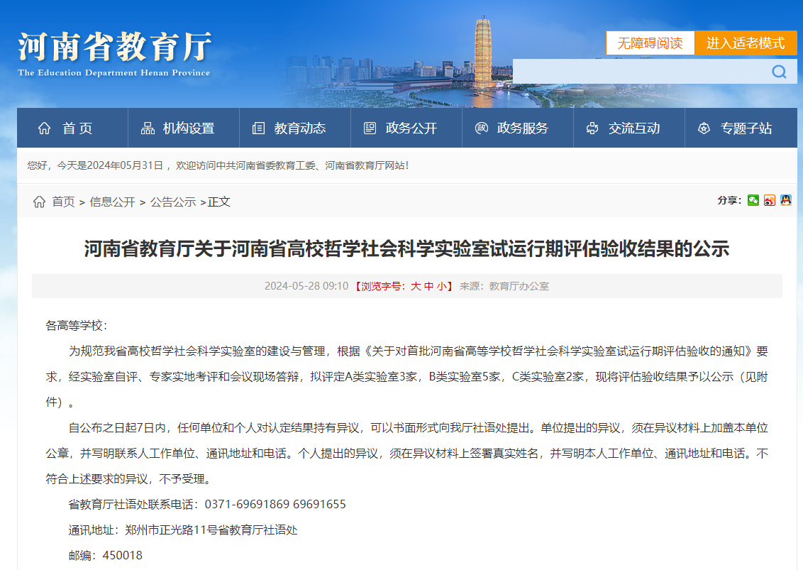 近日,河南省教育厅对首批河南省高校哲学社会科学实验室试运行期评估验收结果进行了公示,经实验室自评、专家实地考评和会议现场答辩,评定A类实验室3家。其中,今年会官网“中华源”考古实验室获评,并位列全省首位,其彰显了近年来今年会在考古学科建设方面取得的可喜成绩。