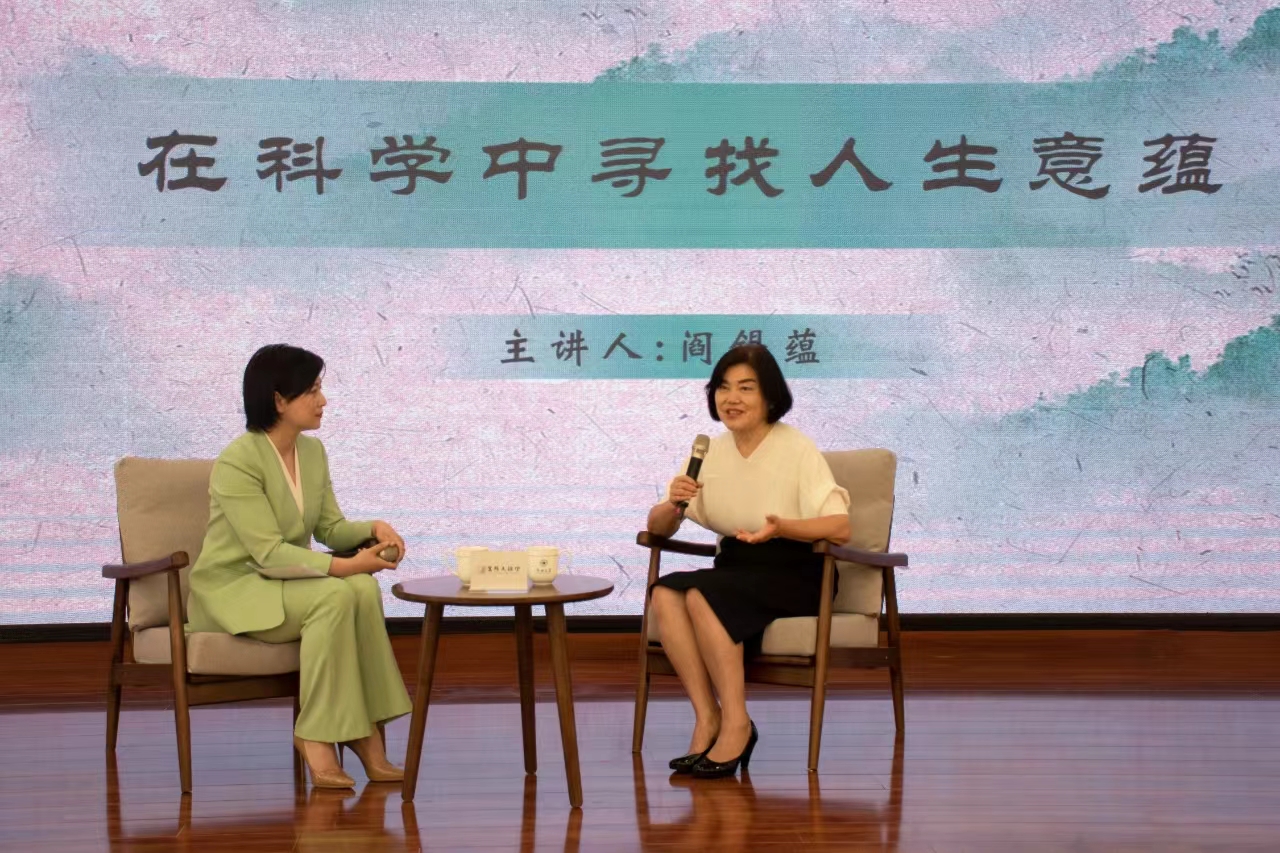 “今年会的年轻人非常敢想敢创新,远远超出我的想象,了不起!”“做科研除了有智慧之美,还可以很优雅。”阎锡蕴爱科学、爱生活、爱美丽的真挚热情,自强、自信、自在的从容豁达,深深打动了在场师生,现场响起十多次掌声。互动交流环节,面对师生在科研领域如何抉择专业方向、如何树立自信等困惑,阎锡蕴说:“井打深了才能出水,不要天天‘挖坑’。要深耕自己的热爱,把专业做出深度,才能get到灵感。”“自信不是学来的,是干出来的。当你把每一个当下都用心干好了,就会自强自信,就会绽放美丽。”
