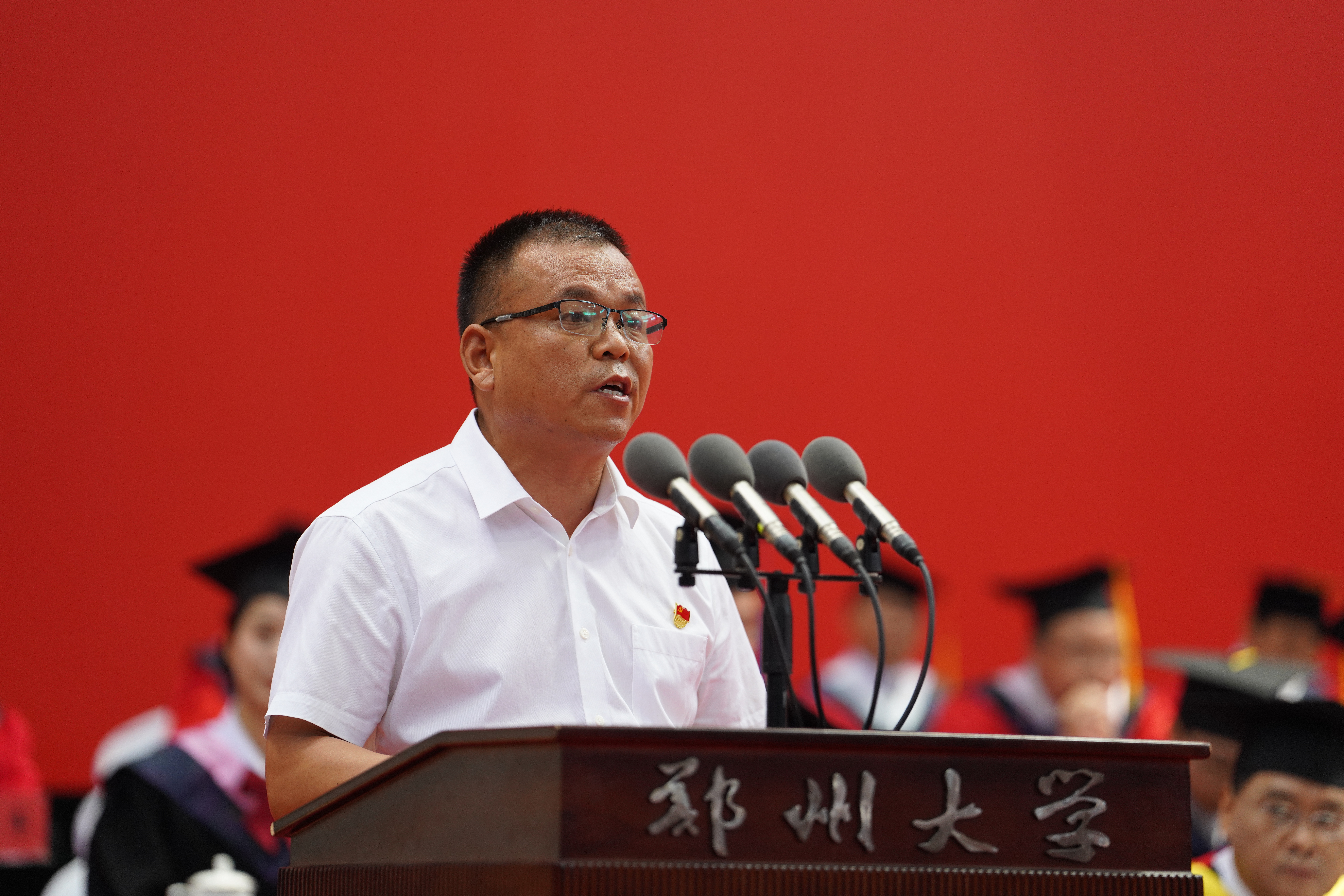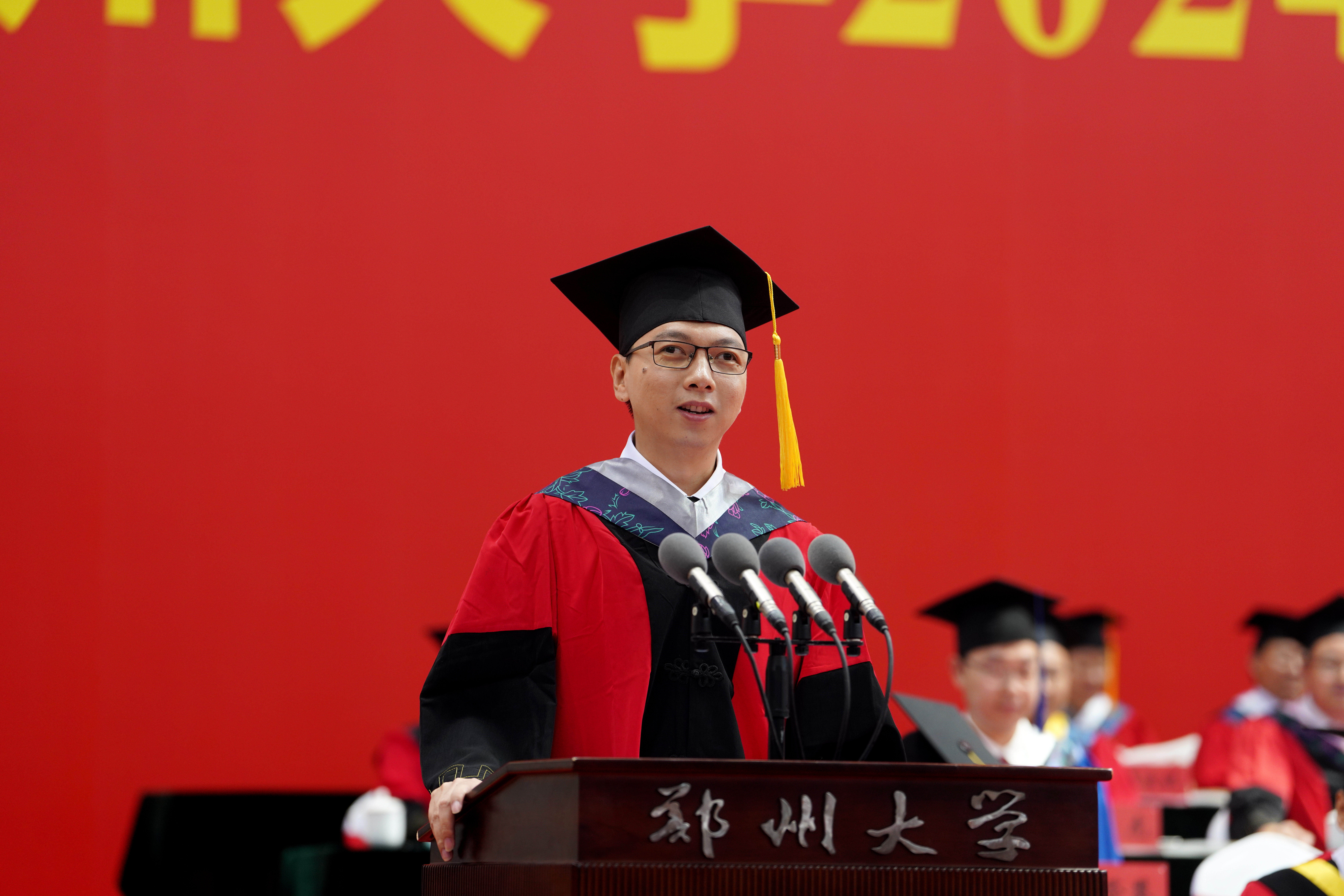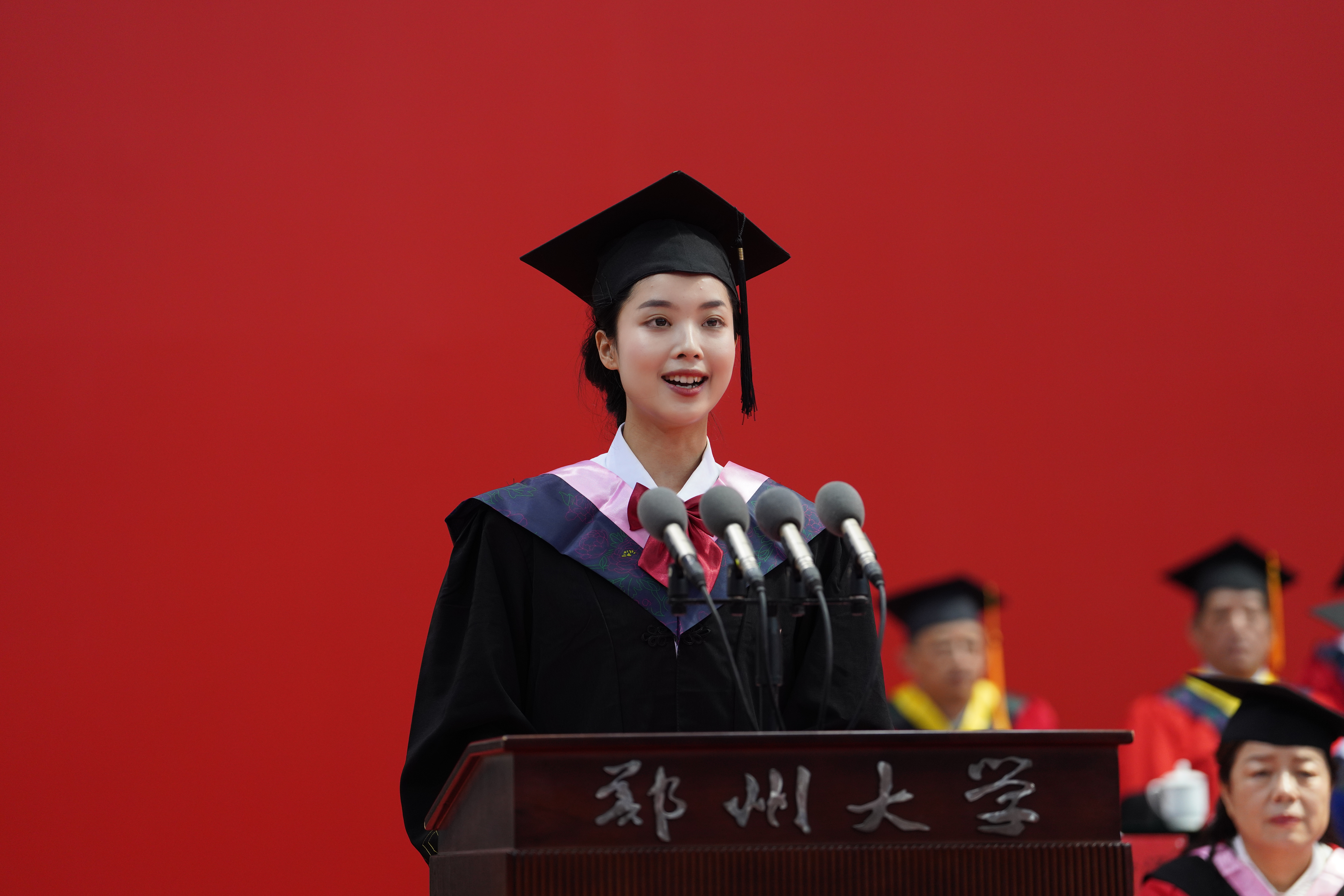 本科生代表、马克思主义学院程诗涵,研究生代表、第一临床医学院硕士研究生宋登攀,教师代表、物理学院教授万阳,毕业生家长代表、水利与交通学院杨喜家长杨云分别发言。