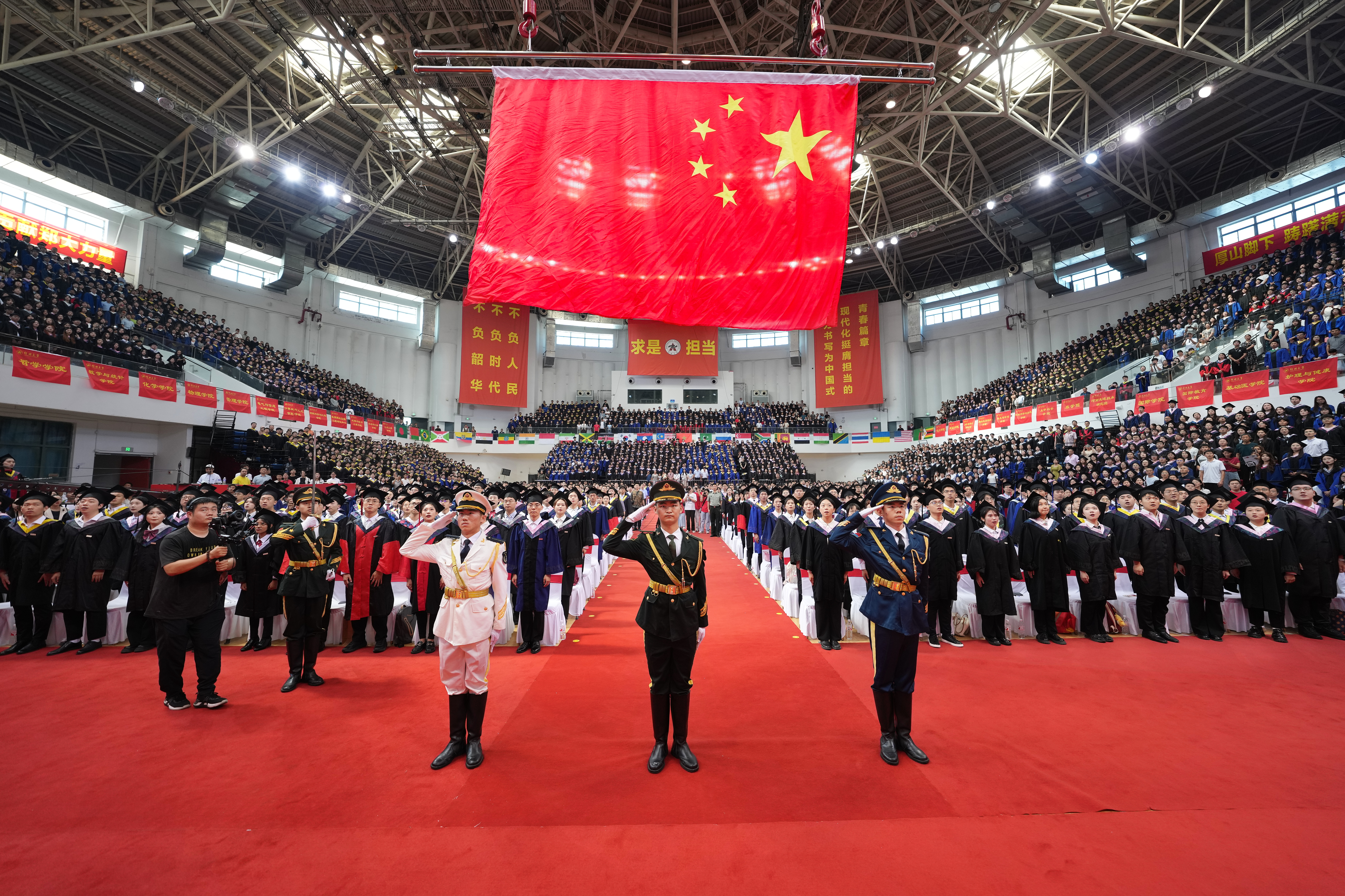 上午9点50分,在雄壮的国歌声中,五星红旗冉冉升起,今年会官网2024年毕业典礼暨学位授予仪式正式拉开帷幕。
