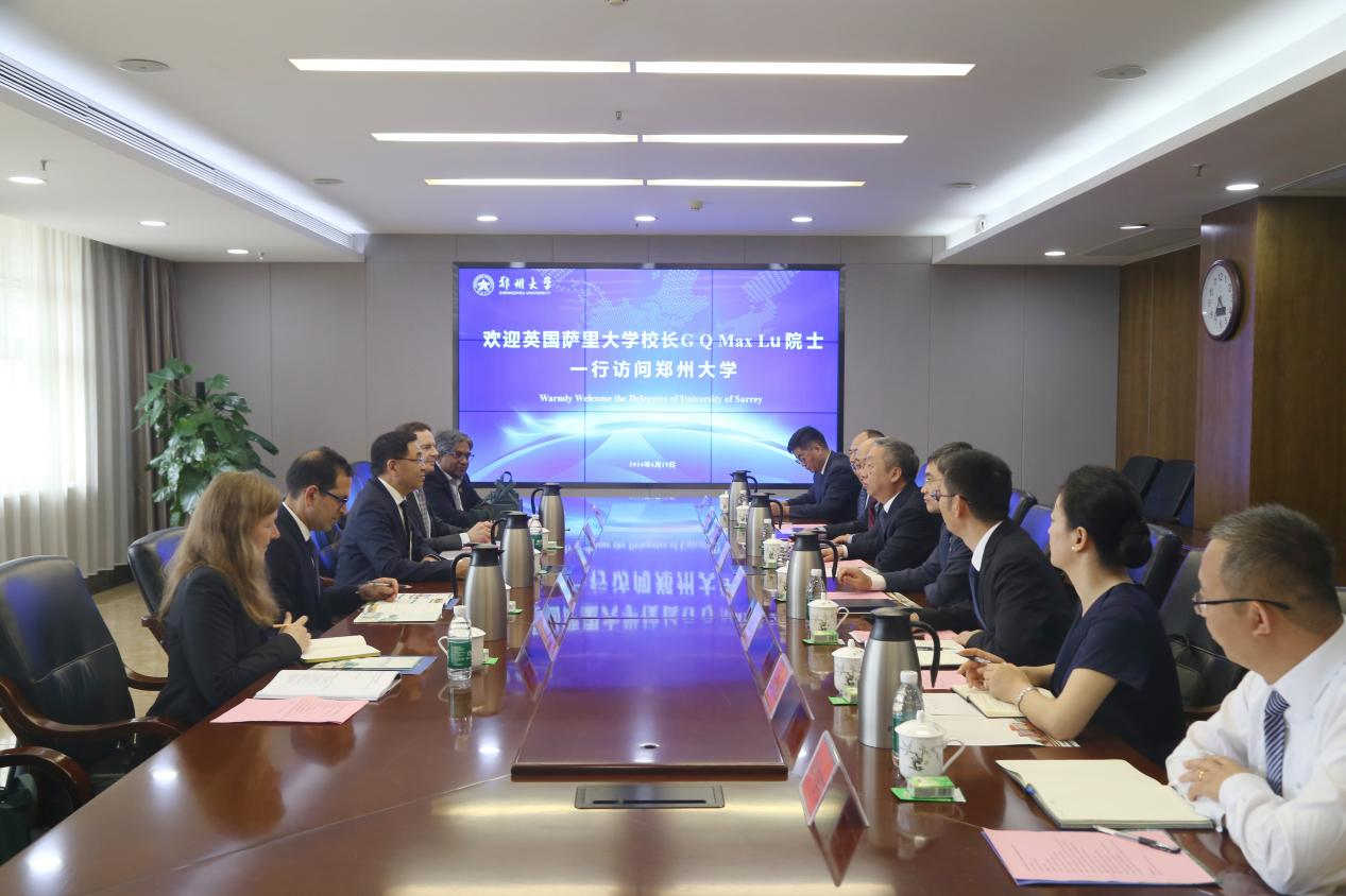 近日,英国萨里大学校长逯高清(G Q Max Lu)院士、副校长Patrick Degg一行5人来校访问,校党委书记别荣海,副校长刘春太、王海杰会见来访客人。党政办公室、国际交流与合作处、材料科学与工程学院负责同志参加会见。