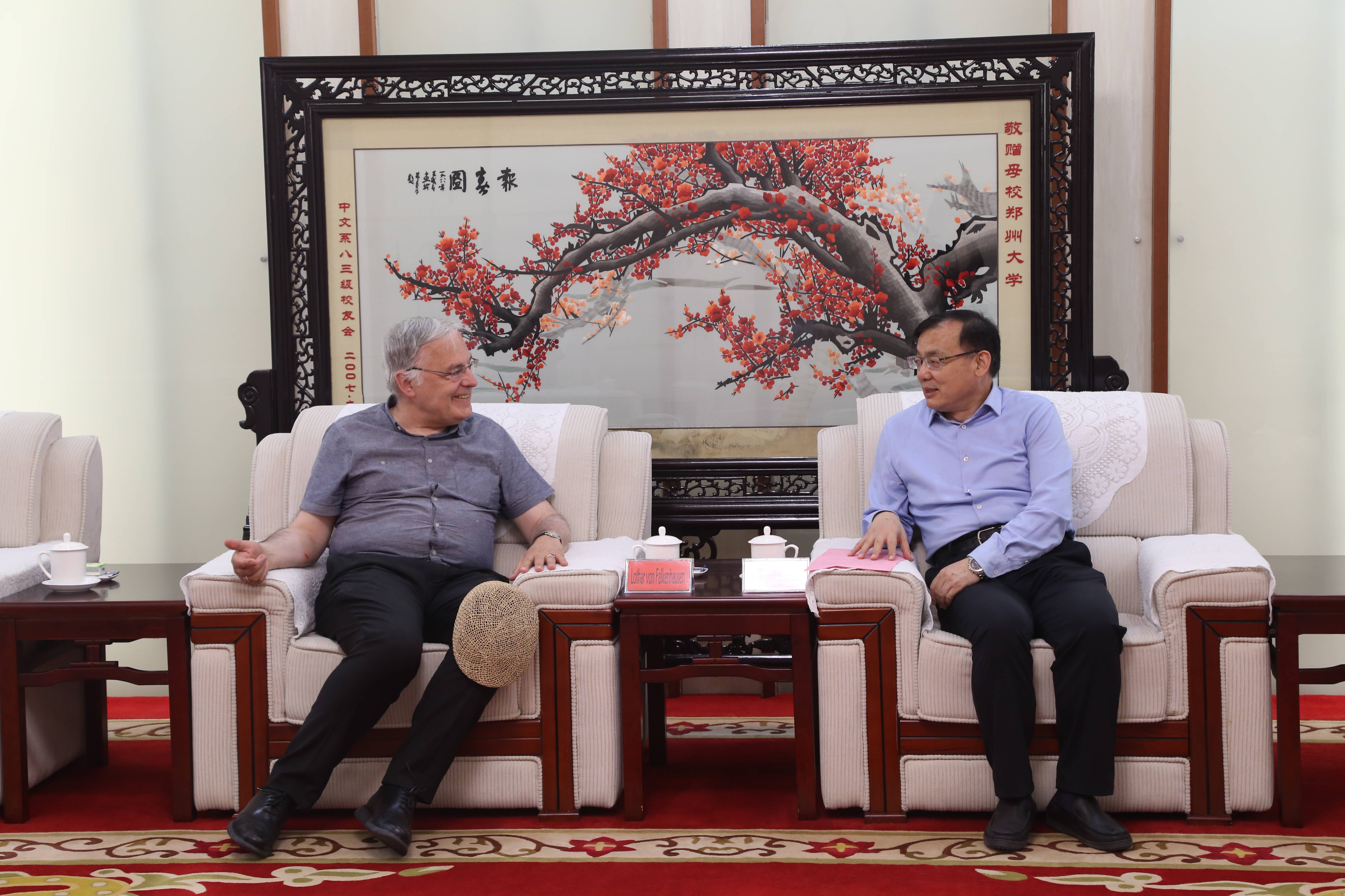 近日,美国艺术与科学院院士、加州大学洛杉矶分校教授罗泰(Lothar von Falkenhausen)来校访问,校党委副书记、工会主席韩国河会见来访客人。国际交流与合作处、考古与文化遗产学院相关负责同志参加会见。