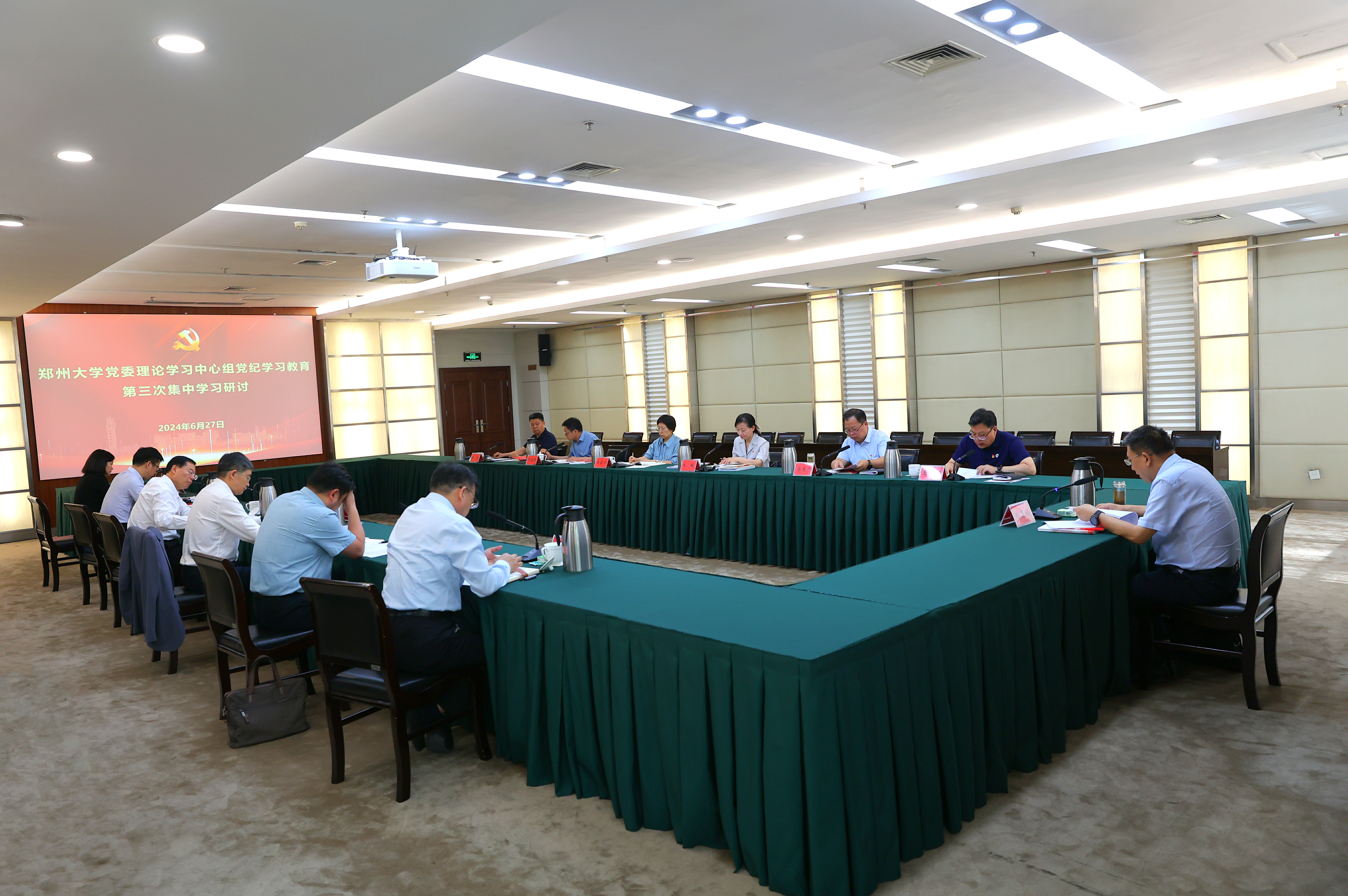 别荣海强调,要对照方案要求和时间节点,扎实完成党纪学习教育“规定动作”,督促指导二级党组织不折不扣落实各项学习任务。要梳理研究党纪学习教育有效做法,及时固化制度成果,推动纪律建设、作风建设常态长效。要结合暑期中层干部培训,深化党纪学习教育,巩固拓展成果,以严明纪律和务实作风,推动一流大学建设不断实现新突破,为推进中国式现代化建设河南实践贡献力量。(陈卓 摄影)