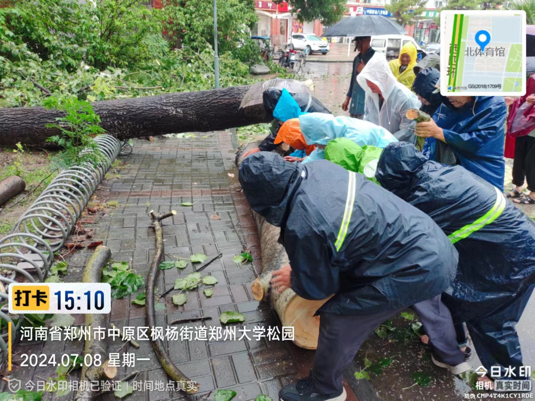 持续降雨眉湖水位上涨,校园部分路段积水,每个隐患点位,均设警戒线和警示标牌。风雨中校园环境组一直在巡视,清理雨水井口确保排水顺畅;清理被风吹倒的树木,确保道路通畅。雨水不停歇,我们一直在。后勤保卫应急排险救援小组,和各校区各单位值守领导老师一起,随时做好抢险救援准备。