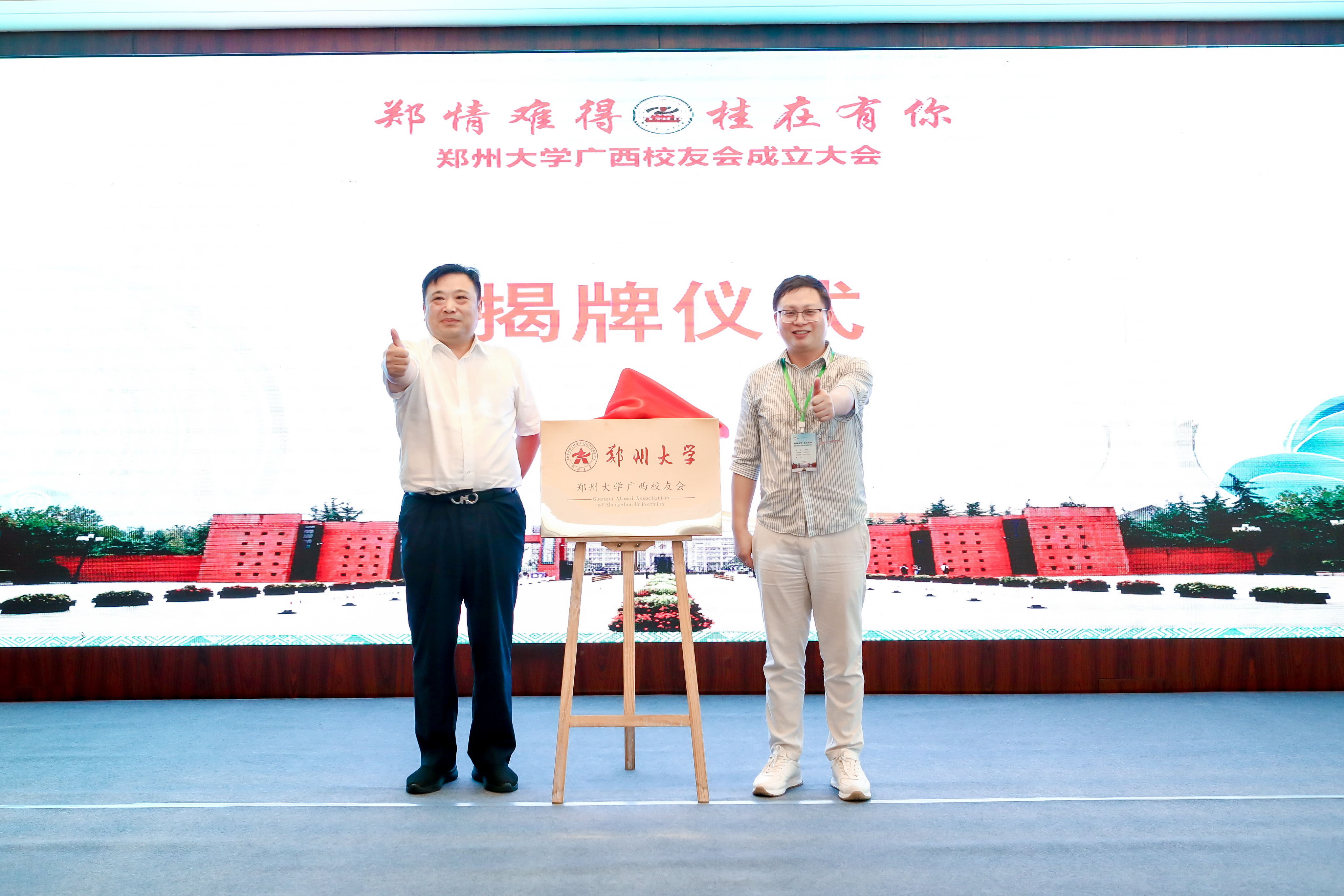 胡少伟为广西校友会揭牌、授旗,为会长颁发聘书,并为广西校友会赠送校训纪念品和书法作品。