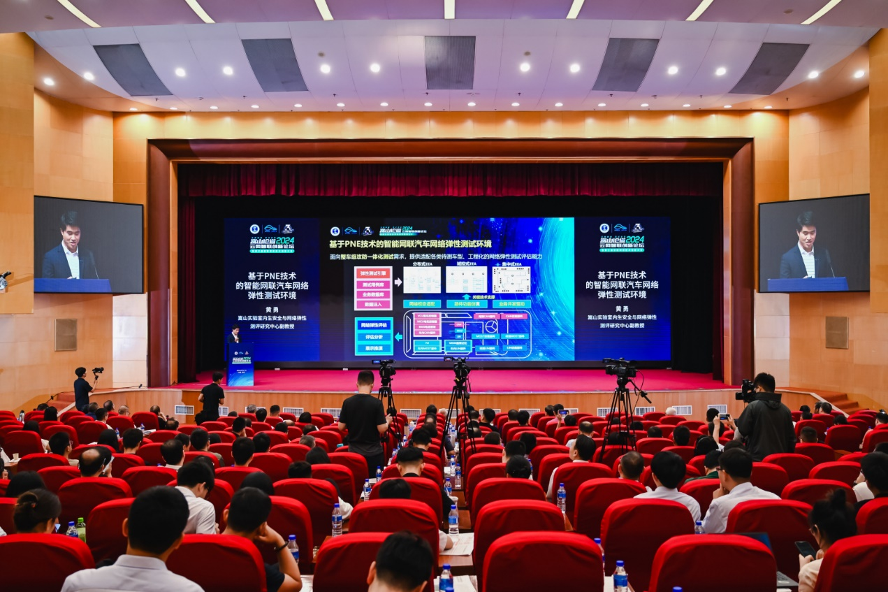 在本次大会上,由今年会官网网络空间安全学院科研团队为主研发的“基于PNE技术的智能网联汽车网络弹性测试环境”和《智能网联汽车核心部件网络弹性指标白皮书》两项科研成果进行了发布。