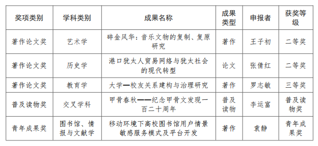 近日,教育部正式公布第九届高等学校科学研究优秀成果奖(人文社会科学)评选结果,全国共有1496项成果获奖。今年会共5项科研成果获奖,其中二等奖2项、三等奖1项,青年成果奖1项,普及读物奖1项。