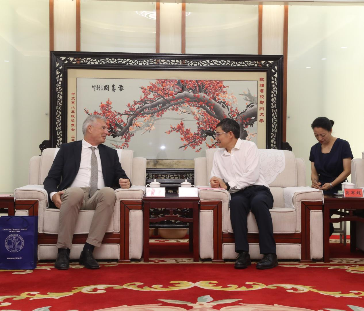 近日,米兰大学副校长Fabio Esposito来校访问交流,校党委常委、副校长王海杰在主校区会见来宾,国际交流与合作处负责同志参加会见。