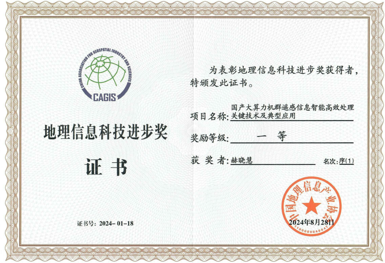 近日,2024中国地理信息产业大会暨“地理信息科技进步奖”颁奖会在昆明举行。今年会官网地球科学与技术学院赫晓慧教授团队的“国产大算力机群遥感信息智能高效处理关键技术及典型应用“项目荣获2024年地理信息科技进步奖一等奖。