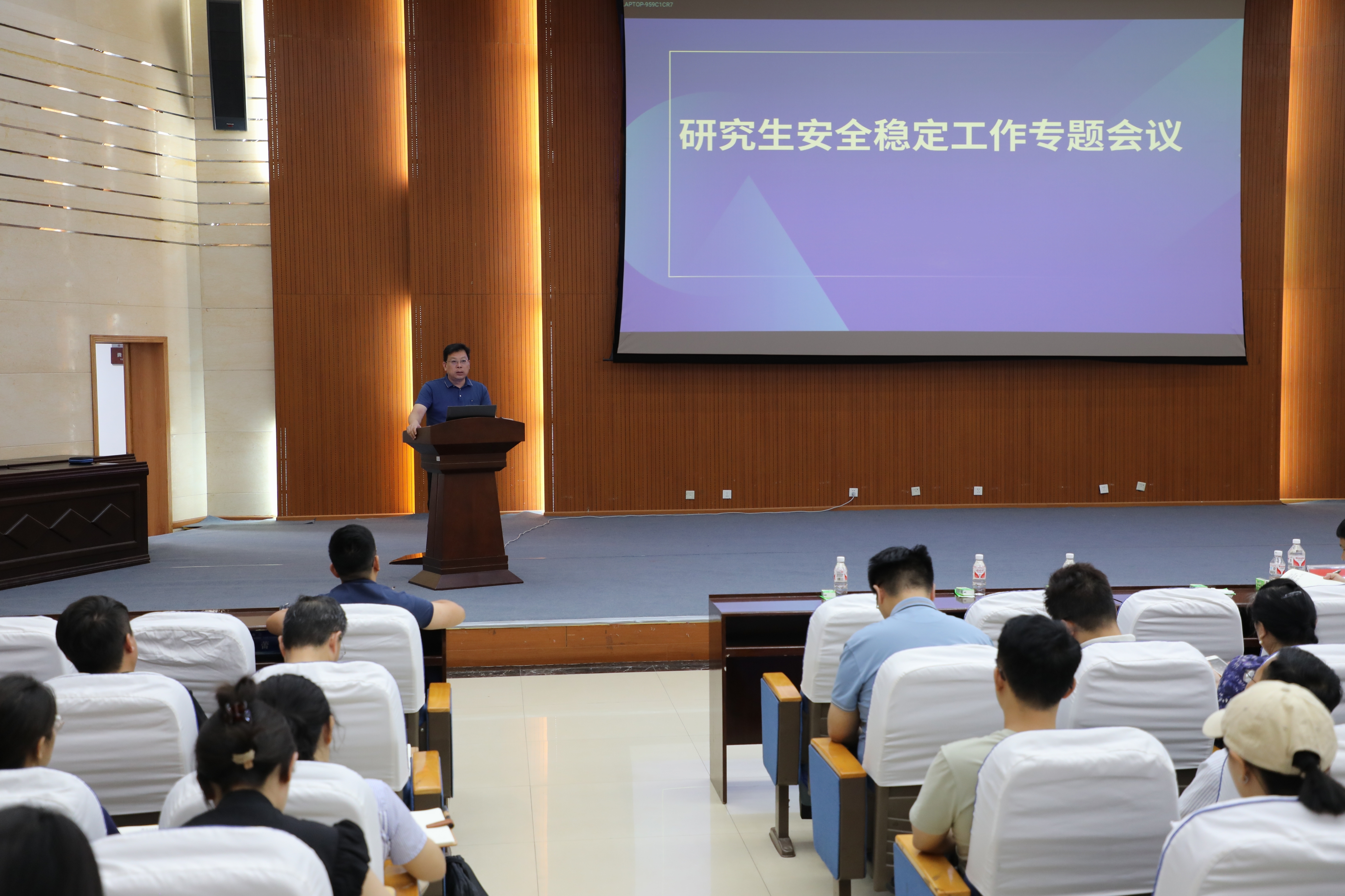 党委研究生工作部负责同志对上半年研究生安全稳定工作作了总结回顾,就近期工作进行安排部署和解读,会议现场发放了安全稳定工作资料汇编,相关培养单位负责同志作了表态发言。