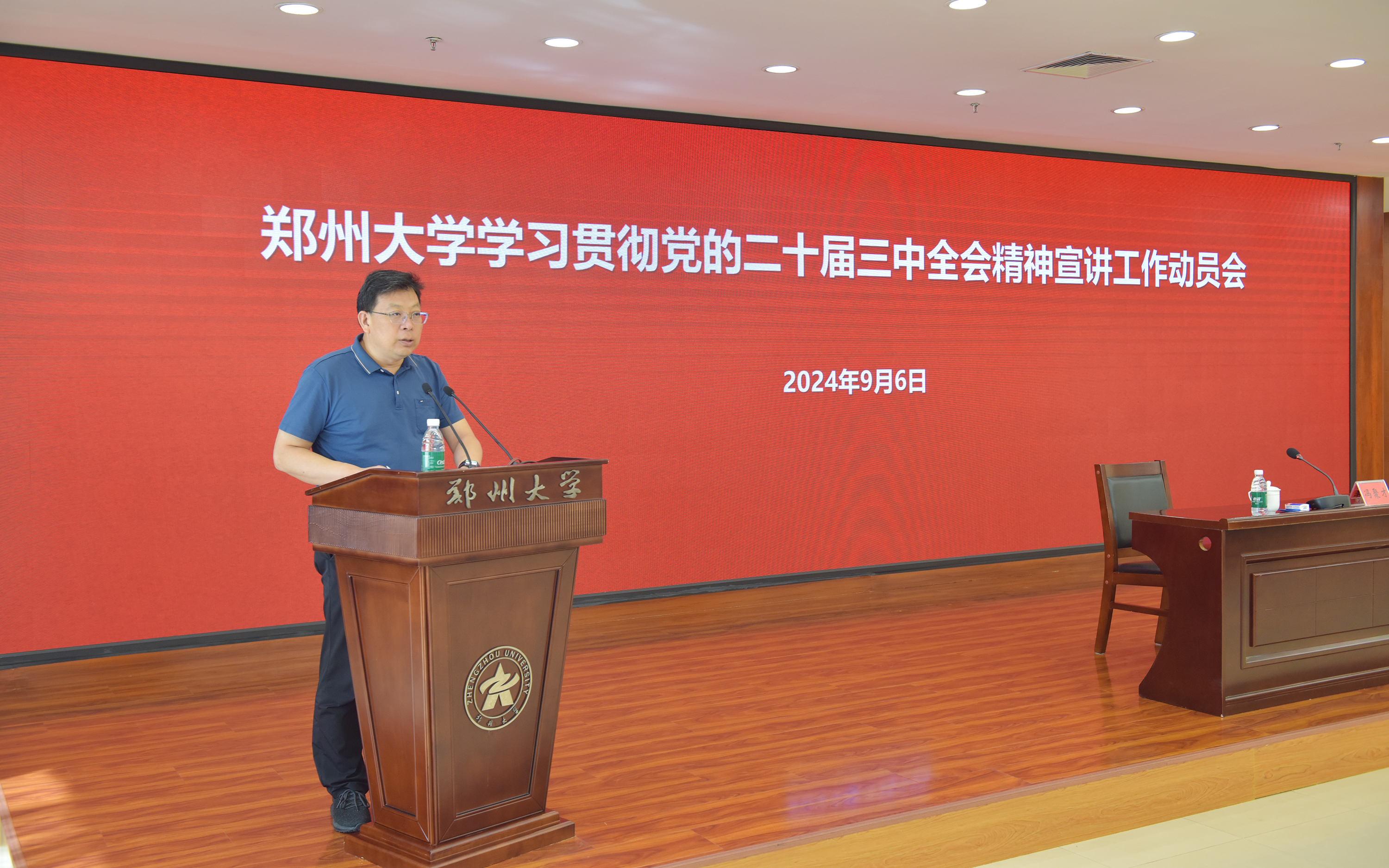 王利国作动员讲话。他指出,学习好、贯彻好党的二十届三中全会精神是当前和今后一个时期一项重大政治任务。要提高政治站位,切实增强宣讲责任感使命感,讲清楚全会的重大时代意义和深远历史影响,讲清楚我们党将改革开放进行到底的坚定决心,推动全校师生持续深化对全会精神的领会和理解,进一步筑牢坚定拥护“两个确立”、坚决做到“两个维护”的思想根基。要聚焦宣讲重点,确保学习宣讲有高度有深度。要深入宣讲党的二十大以来党和国家事业取得的重大成就,深入宣讲习近平总书记关于全面深化改革的一系列新思想、新观点、新论断,深入宣讲习近平总书记在党的二十届三中全会上的重要讲话精神,深入宣讲全会《决定》提出的进一步全面深化改革重大举措,深入宣讲贯彻落实全会精神的基本要求,引导全校师生切实把思想和行动统一到全会精神上来,把智慧和力量凝聚到落实全会作出的重大改革部署上来。要精心组织实施,着力提升宣讲的针对性实效性。注重把准基调,注重示范引领,注重联系实际,深入浅出把全会精神讲透彻、讲生动,让广大师生真正听得懂、记得住、用得上,推动党的二十届三中全会精神学习贯彻扎实深入、全域覆盖、全面升温。