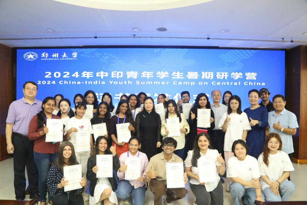 张倩红代表学校祝贺各位学员圆满完成研学任务。她指出,本次研学营为促进中印青年学生对话与交流,分享经验和观点,共话机遇与挑战提供了宝贵机会。她希望参加研学营的印度青年学生能积极传播中文之美、中华文化之美,继续作中华优秀传统文化的热情宣传者、中印青年一代友谊的坚定建设者,为推进两国文化交流注入更多青春力量。
