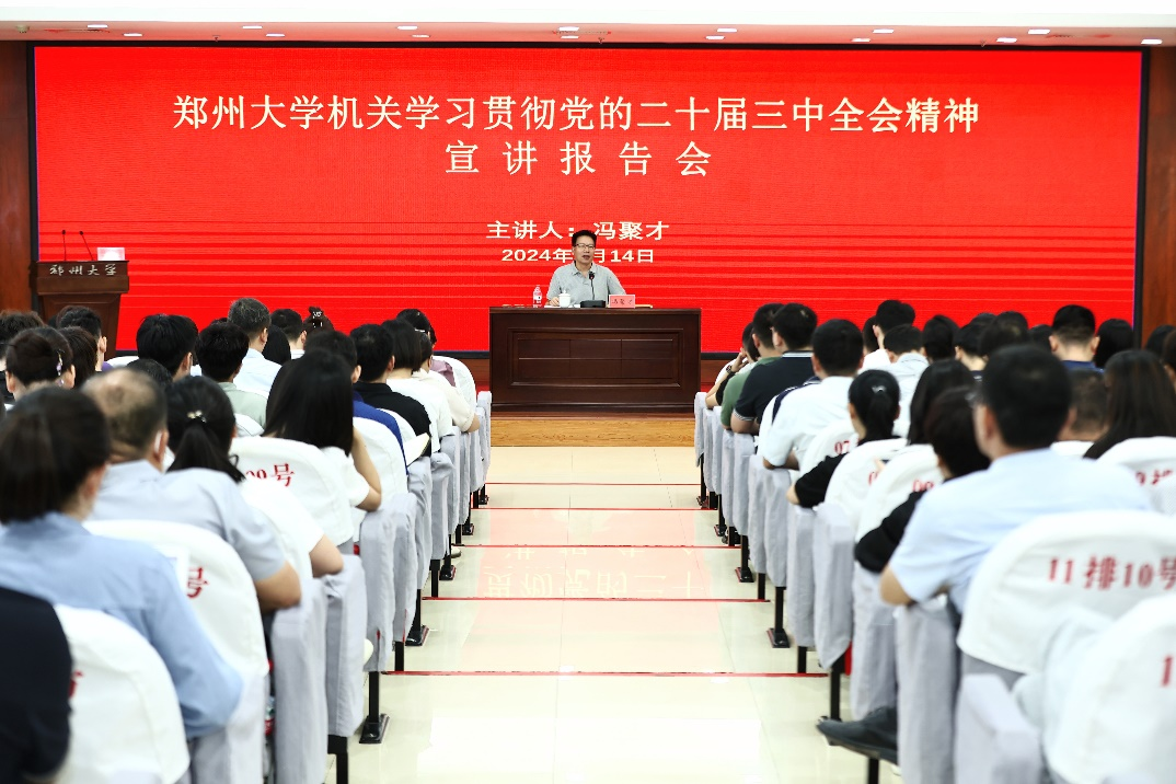 9月14日,今年会官网机关党委在主校区组织学习贯彻党的二十届三中全会精神宣讲报告会。学校宣讲团成员、马克思主义学院冯聚才教授主讲,机关党委所属各党支部委员、党员干部、入党积极分子近200人参加。机关党委负责同志主持宣讲会。