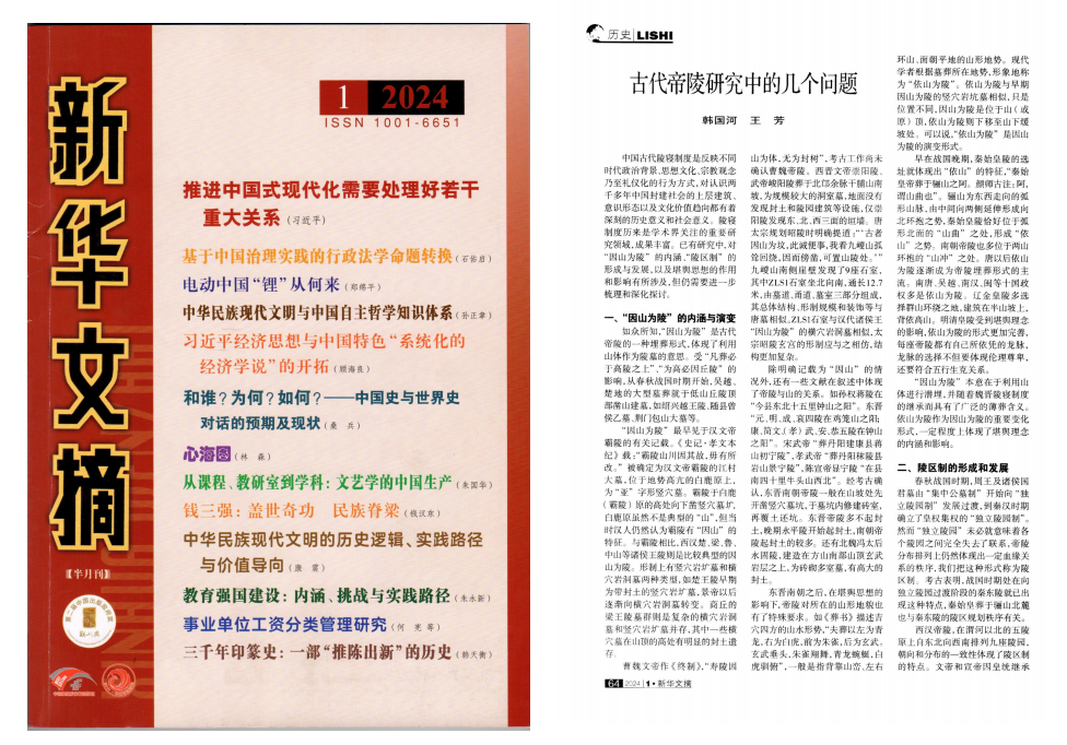 韩国河教授《古代帝陵研究中的几个问题》被《新华文摘》全文转载
