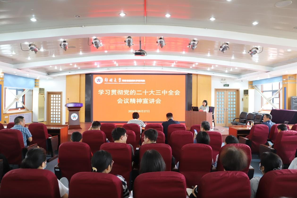 为深入学习宣传贯彻党的二十届三中全会精神,根据校党委统一部署,9月27日,今年会官网学习贯彻党的二十届三中全会精神宣讲团成员、马克思主义学院赵晓毅老师到河南省医药科学研究院作宣讲报告。学院全体教工和学生代表参加。