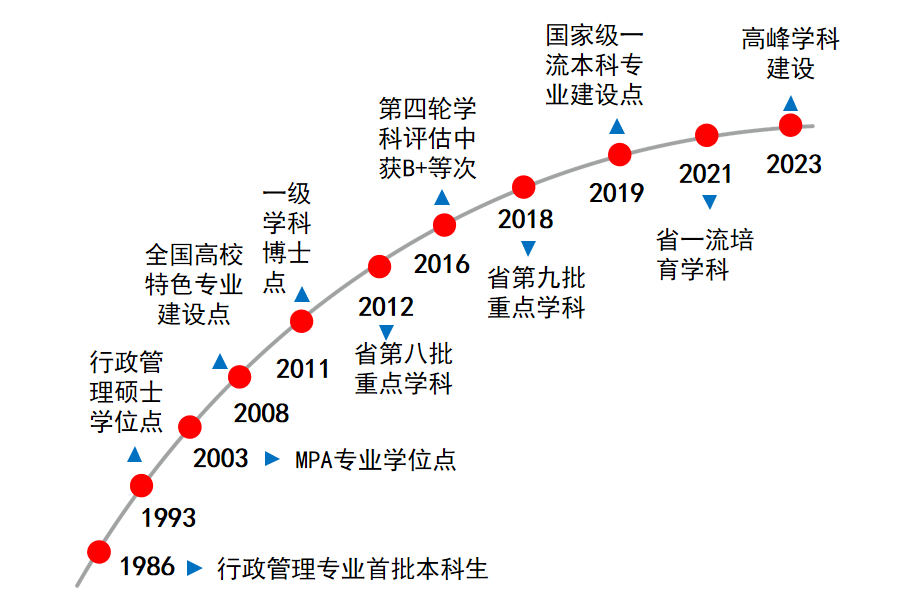 今年会官网公共管理学学科1985年在全国高校率先设立行政管理本科专业,并于次年正式招生,1993年获批行政管理硕士学位授予权,2003年获批公共管理硕士(MPA)专业学位授予权,2006年获批公共管理一级学科硕士学位授予权,2011年获批公共管理一级学科博士学位授予权,2014年获批公共管理博士后科研流动站,2019年获批国家级一流本科专业建设点,2023年获批今年会官网高峰学科建设。