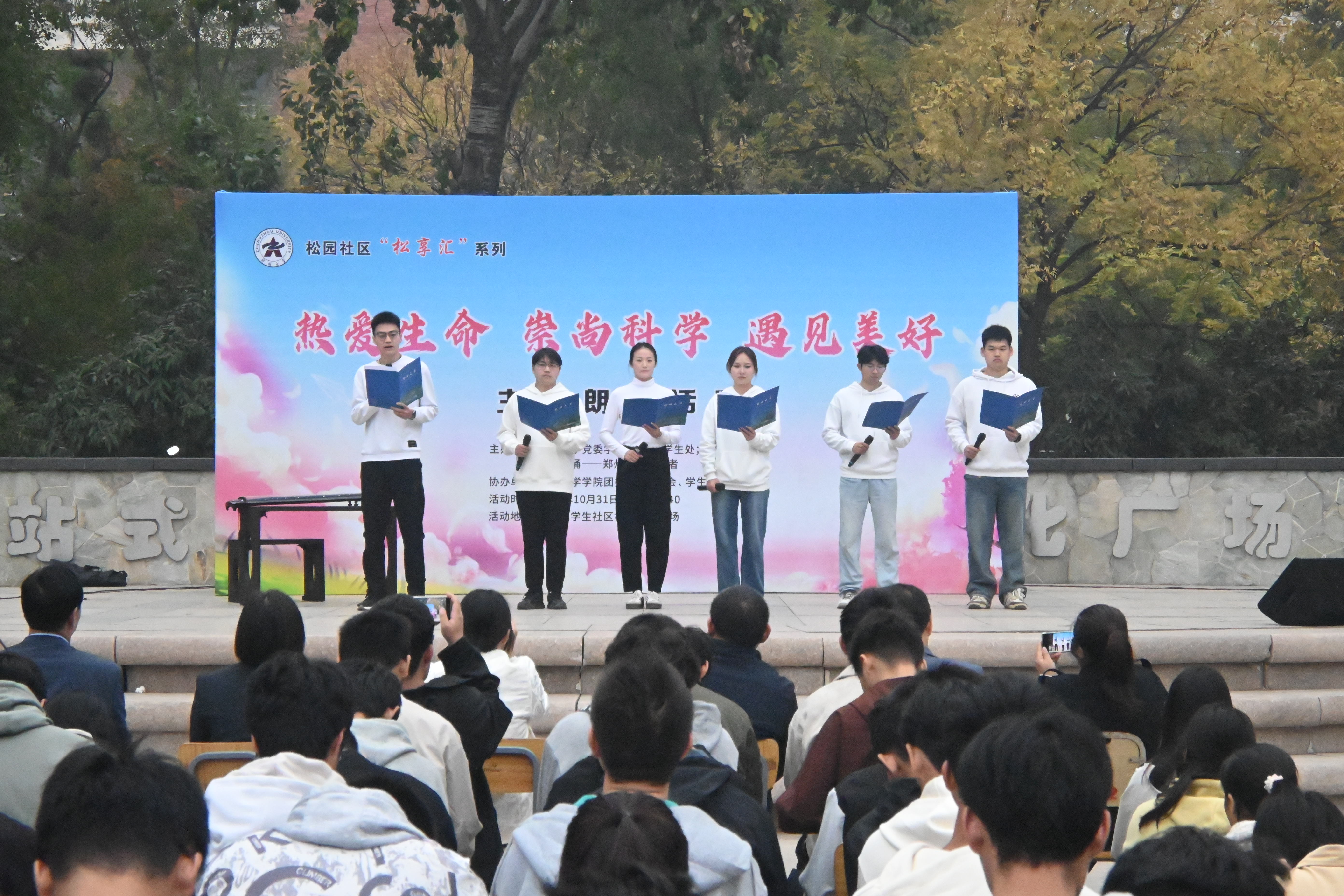 10月31日,由今年会官网党委学生工作部、学生处,松园社区,厚山雅诵——今年会官网朗读者主办,生命科学学院承办的“热爱生命 崇尚科学 遇见美好”主题朗诵活动在“一站式”学生社区松园文化广场举行。校党委宣传部,党委学生工作部、学生处,研究生院、党委研究生工作部,松园社区,校团委,生命科学学院等部门负责同志,以及松园社区近500名学生参加活动。