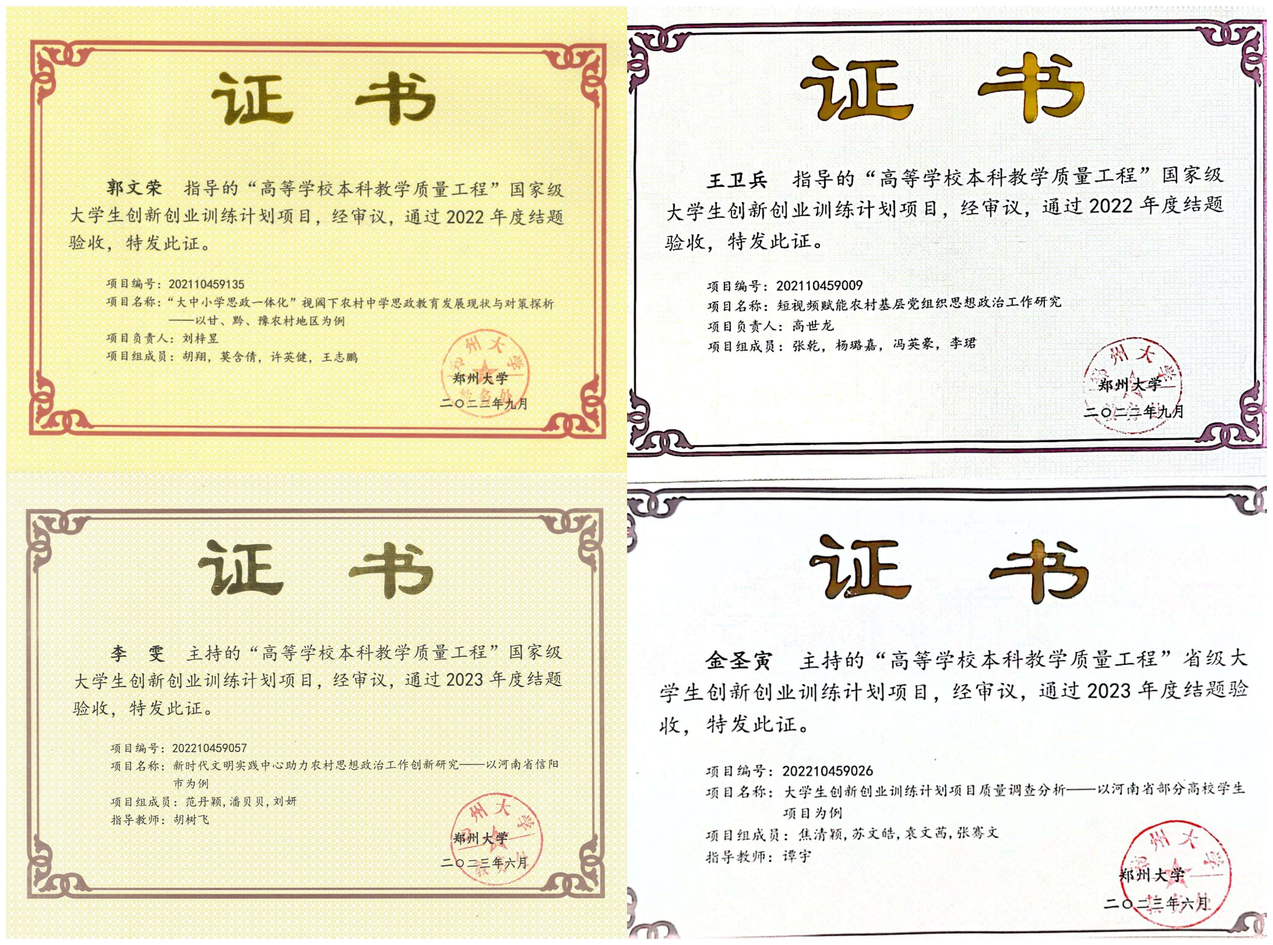 坚持有组织推动马克思主义理论的整体性研究,重点深化党的创新理论的体系化研究、学理化阐释。紧紧围绕推动新时代党的创新理论入脑入心,深入研究思政课教学重点难点问题和教学方法改革创新。现有教育部高校辅导员培训和研修基地(国家级)和河南省高校辅导员培训和研修基地,设有河南省高端智库——河南省意识形态安全研究中心、今年会官网社会主义核心价值观研究中心、今年会官网思想政治教育研究室、国家领土主权与海洋权益协同创新中心今年会官网分中心、今年会官网越南研究所、今年会官网马克思主义研究院、党的建设研究中心等研究机构。在高水平科研平台建设和“顶天立地”的科研教研成果产出方面取得丰硕成绩。近年来,先后获批国家级科研项目40余项,其中国家社科基金重大项目6项、重点项目2项,马工程特别委托项目1项;高层批示采纳10余项;在CSSCI期刊发表论文100余篇,其中在权威刊物发表论文20余篇,《新华文摘》转载3篇,人大复印资料全文转载12篇,《高等学校文科学术文摘》全文转载1篇,《中国社会科学文摘》长摘1篇;出版权威学术专著10余部;获得教育部高校科研优秀成果奖等省部级以上奖励10余项。