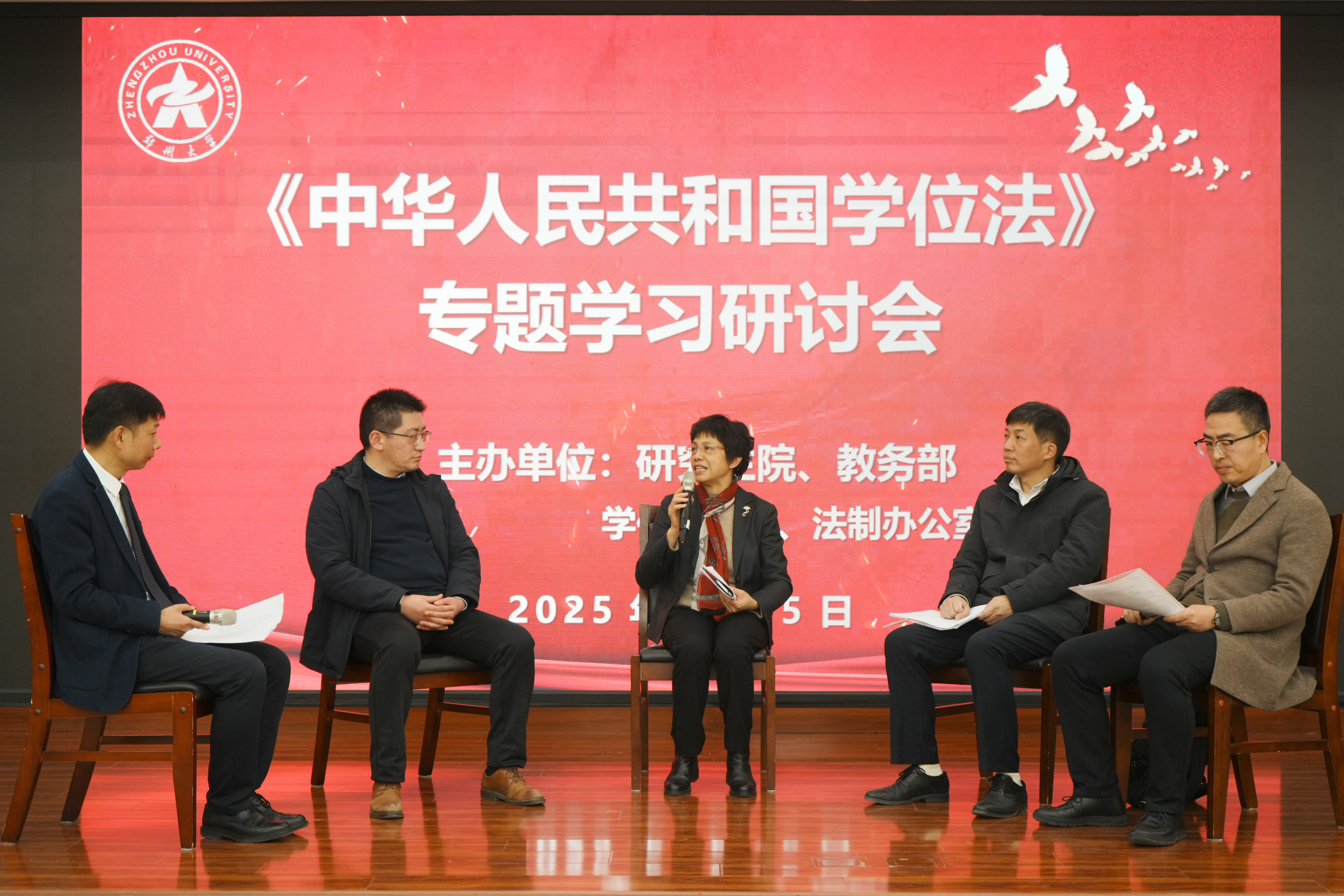 会上,程雁雷以“《中华人民共和国学位法》的制定与实施”为题,从《学位法》的制定背景、立法过程、主要内容及实施意义等方面进行了全面阐述。并在圆桌研讨环节,与法学院王红建、郑磊、李永超等专家学者围绕《学位法》的实施展开研讨交流。